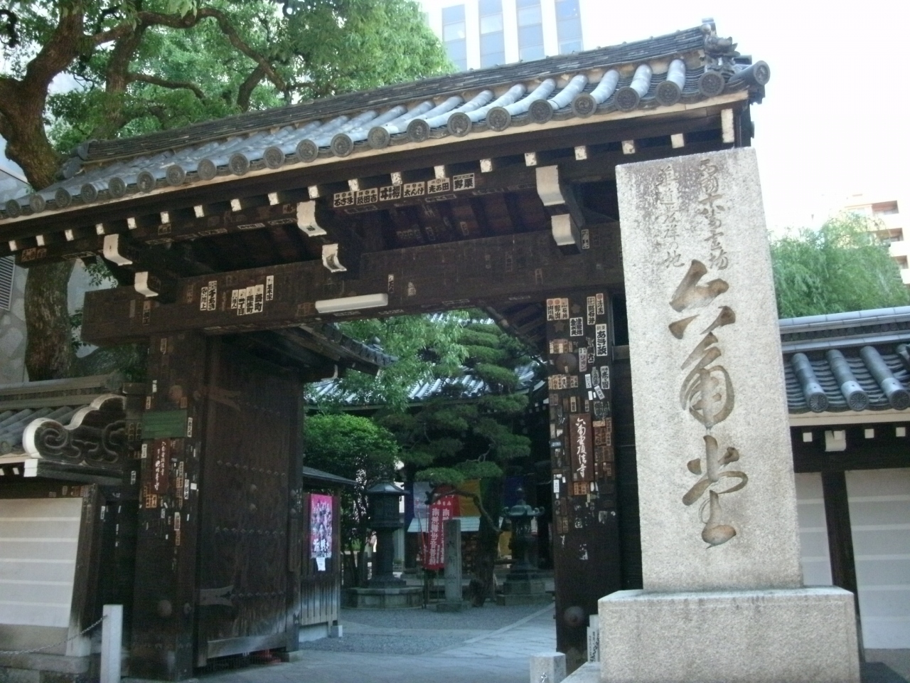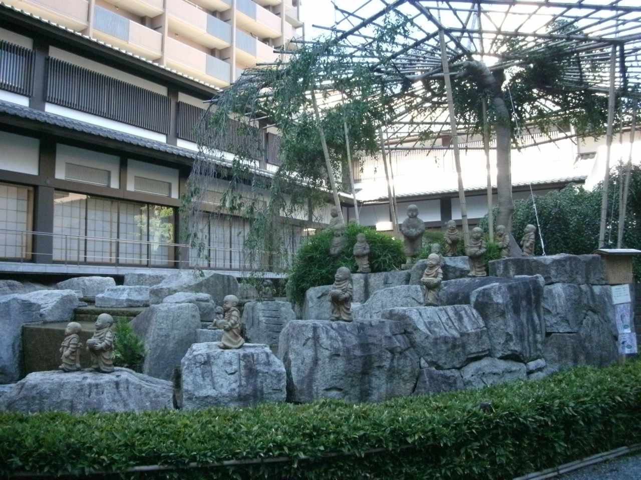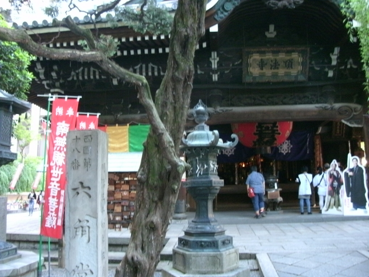 西国三十三カ所(第18番札所)の巡礼者や修学旅行生、外国人観光客などたくさんの人々がお参りされていました。6月に公開される映画「花戦さ」の物語の舞台となったことから、主要キャストの等身大のパネル写真がお堂の前に並ぶなど、訪れたときは少し雑然とした雰囲気がありましたが、立派なお堂や十六羅漢の像などがビルに囲まれれているアンマッチな風景に面白さを感じました。