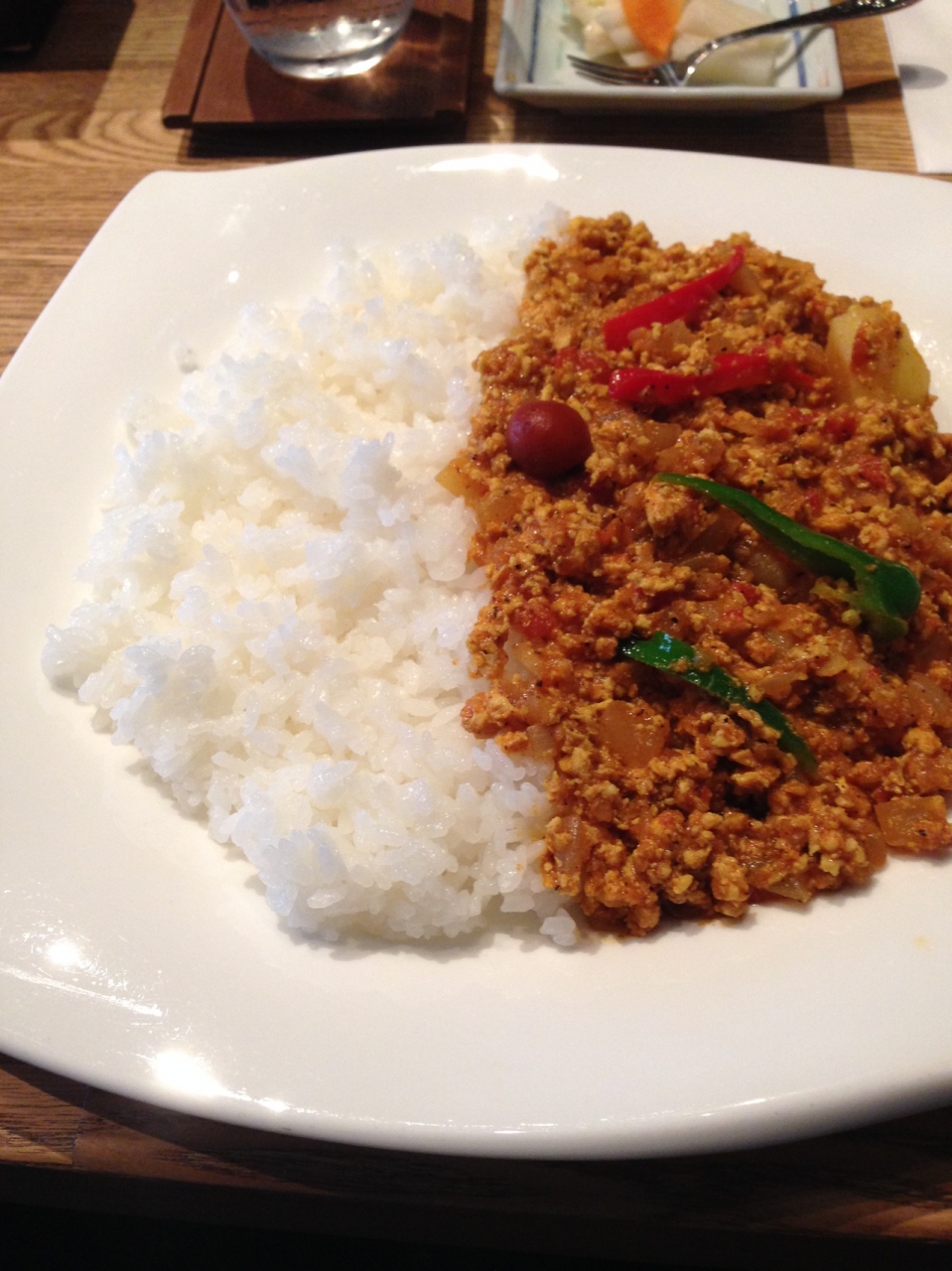 一皿1000円でした。大盛りは200円プラスで、チーズ乗せは100円プラスのようです。チーズ乗せしてバーナーで炙って頂けます。超辛口です。確かに美味しいのですが、ランチにしては少々高めです。