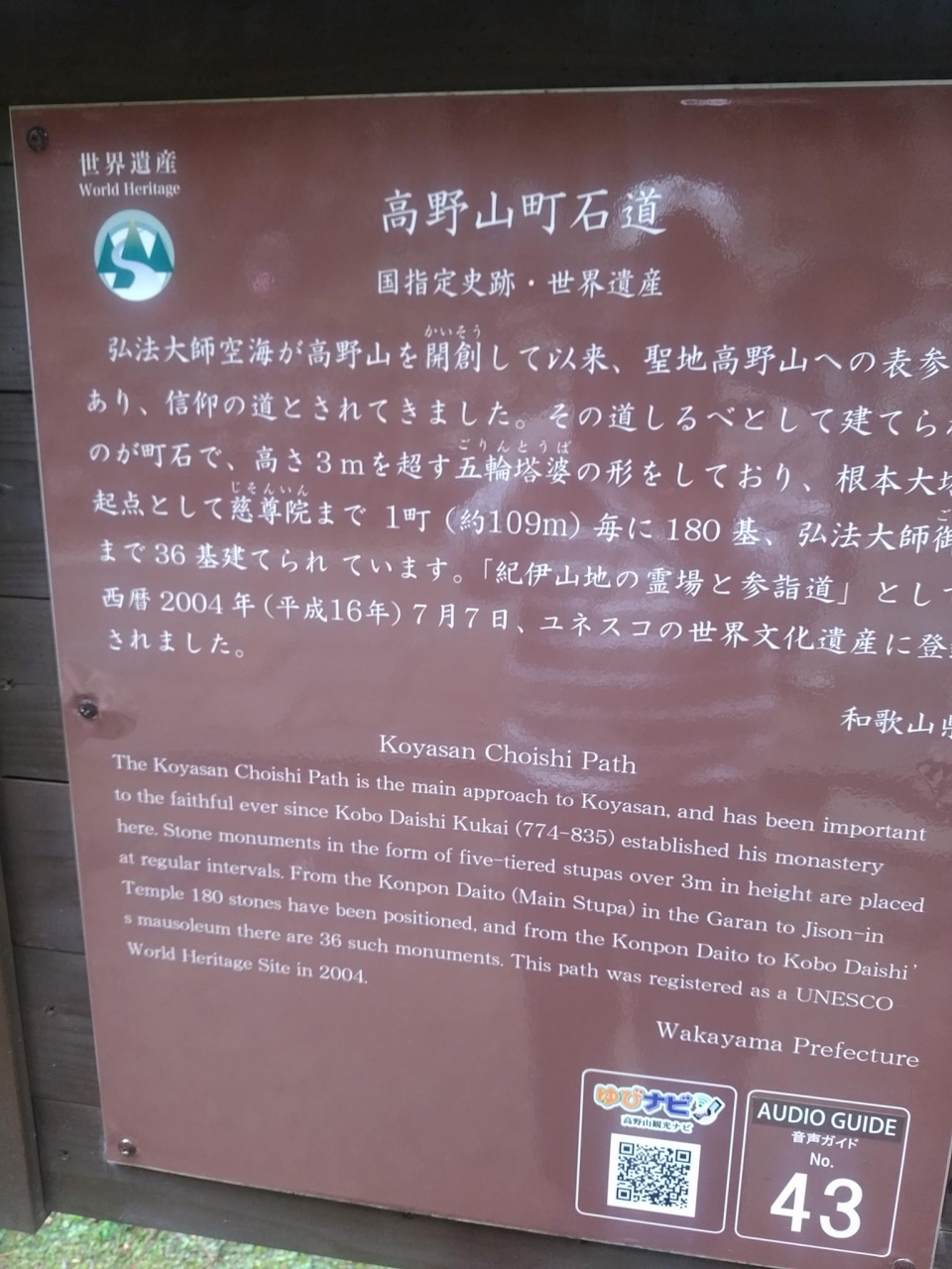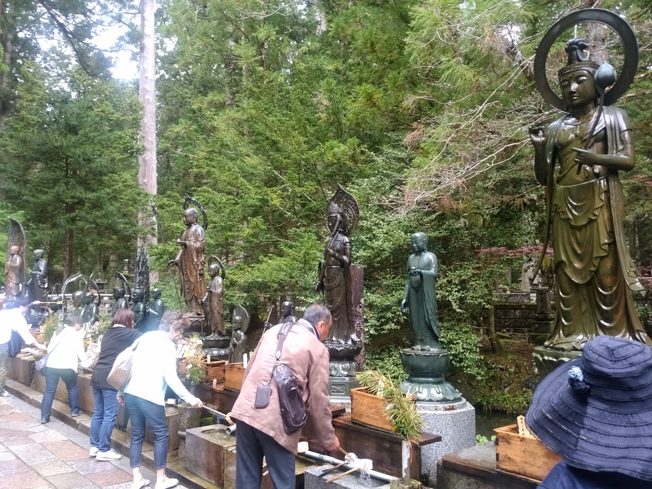 高野山奥の院入口である一の橋から約2キロの参道は、杉の木に覆われると同時に戦国武将や有名企業等の供養塔や祈念碑、慰霊碑が立っています。最大の聖地と言われる奥の院まで見学した処は、有名戦国武将の墓、汗かき地蔵、姿見の井戸、芭蕉句碑、英霊殿、密厳殿、御供所、御廟橋、水向き地蔵、燈籠堂、弘法大師御廟、弥勒石で2キロの長さを歩き疲れ果ててましたが来た甲斐があり良かったです。