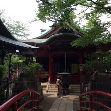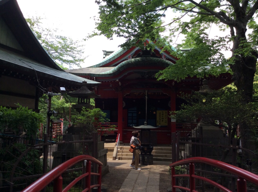 JR中央線や京王電鉄井の頭線の吉祥寺駅から徒歩で10分ほどかかる、井の頭公園内の井の頭池のほとりにある神社です。新緑の五月には鮮やかな緑の中に、社殿の朱色がとても良く映えて、観光客の目を楽しませていました。