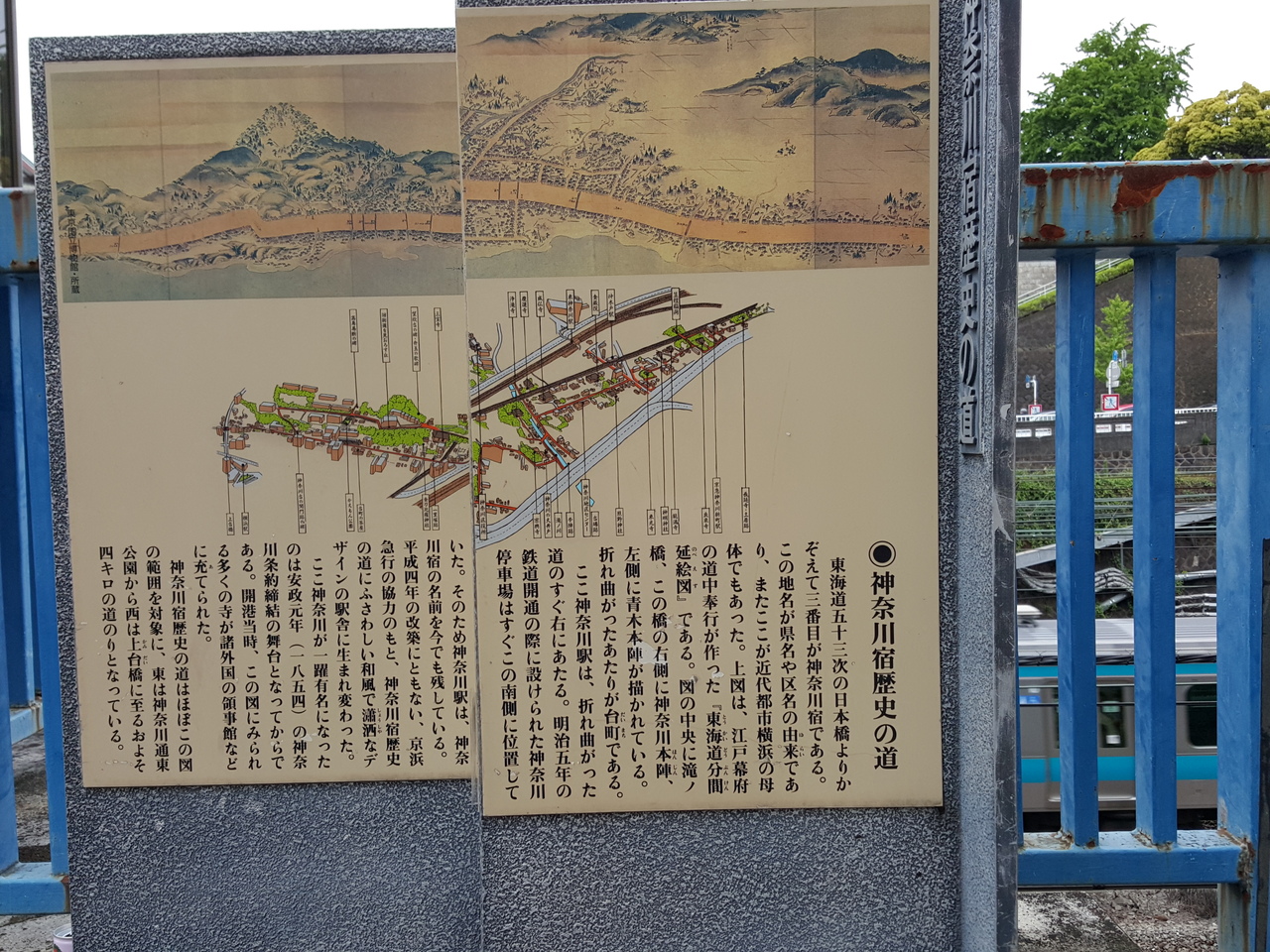 橋のたもと(京急神奈川駅出入り口付近)に「神奈川歴史の道」の案内板がありました。