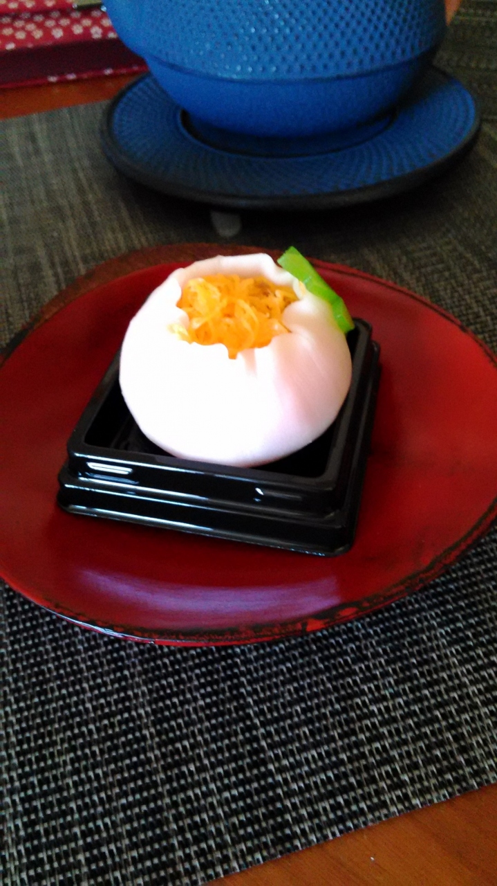 5月なのでバラもあります。4種類選んで箱に入れる時に、3つがこしあんとこちらの1つが黄みあんですと教えてくれましたが、選んでいる時に教えてくれたら、更に良かったけど。
