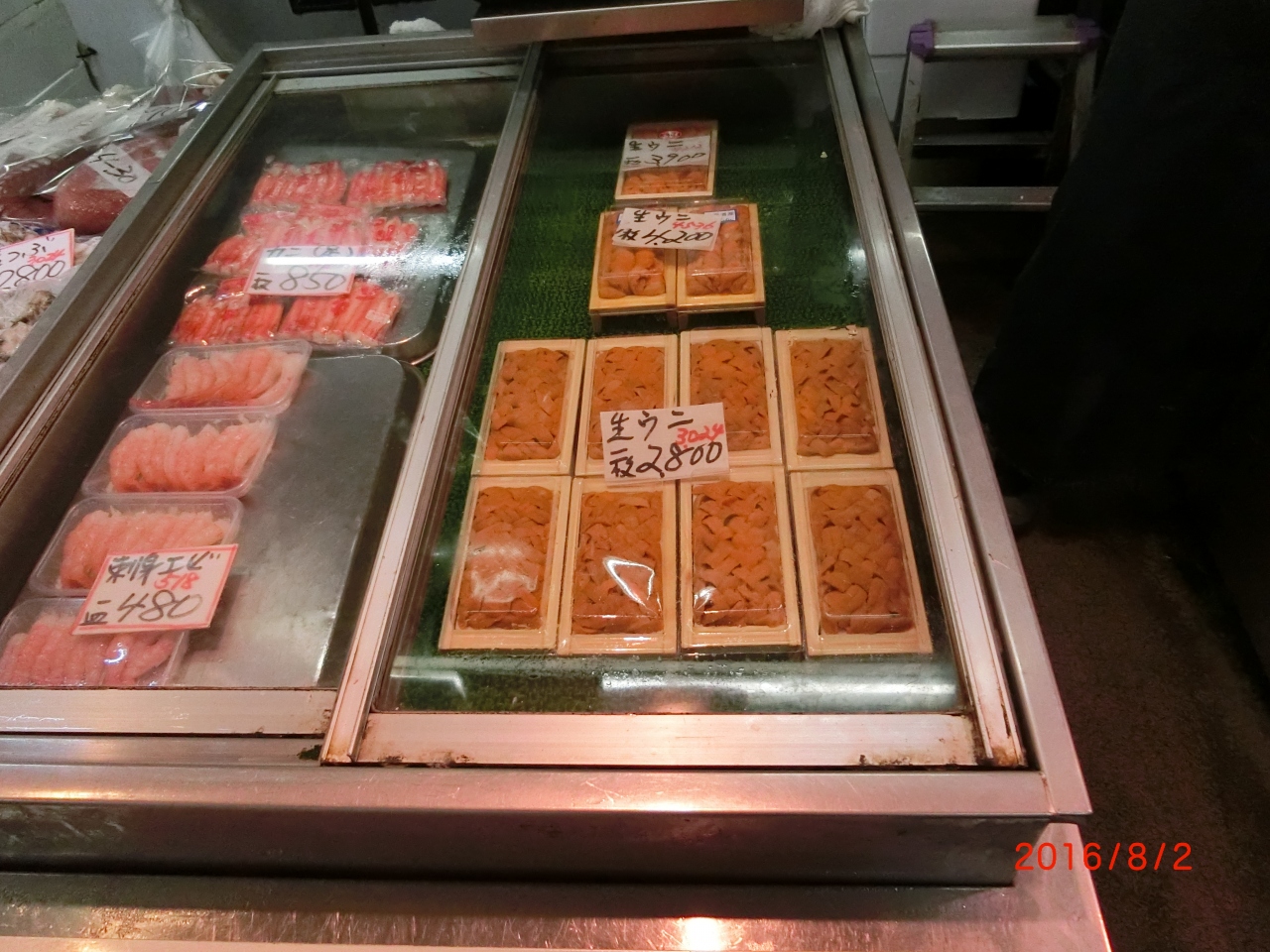 鮮魚や貝類など、花咲ガニ、ウニなど美味しそうなのがたくさんありましたが、