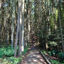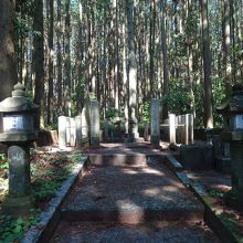 真っ直ぐ続く杉並木の向こう、階段を登ったところに墓がありました。