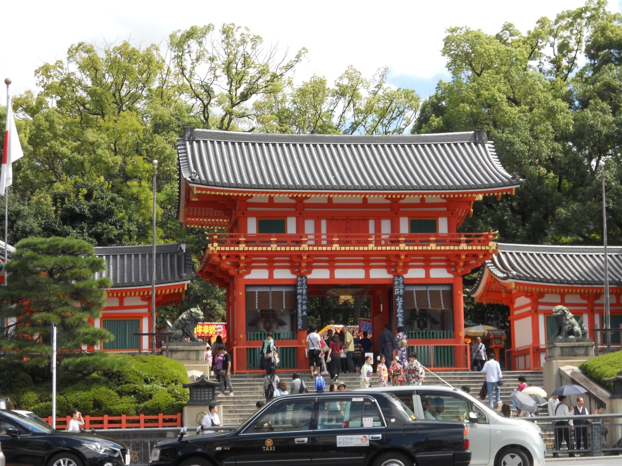 「八坂神社」の「四条通り」沿いの祇園交差点のところにある門が「西楼門」です。