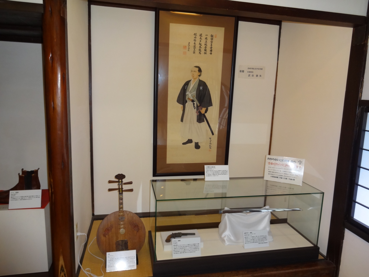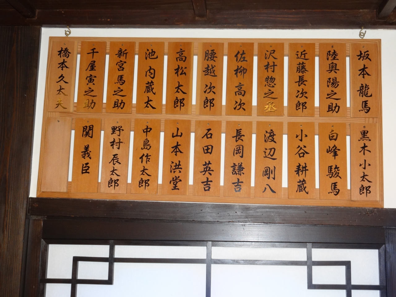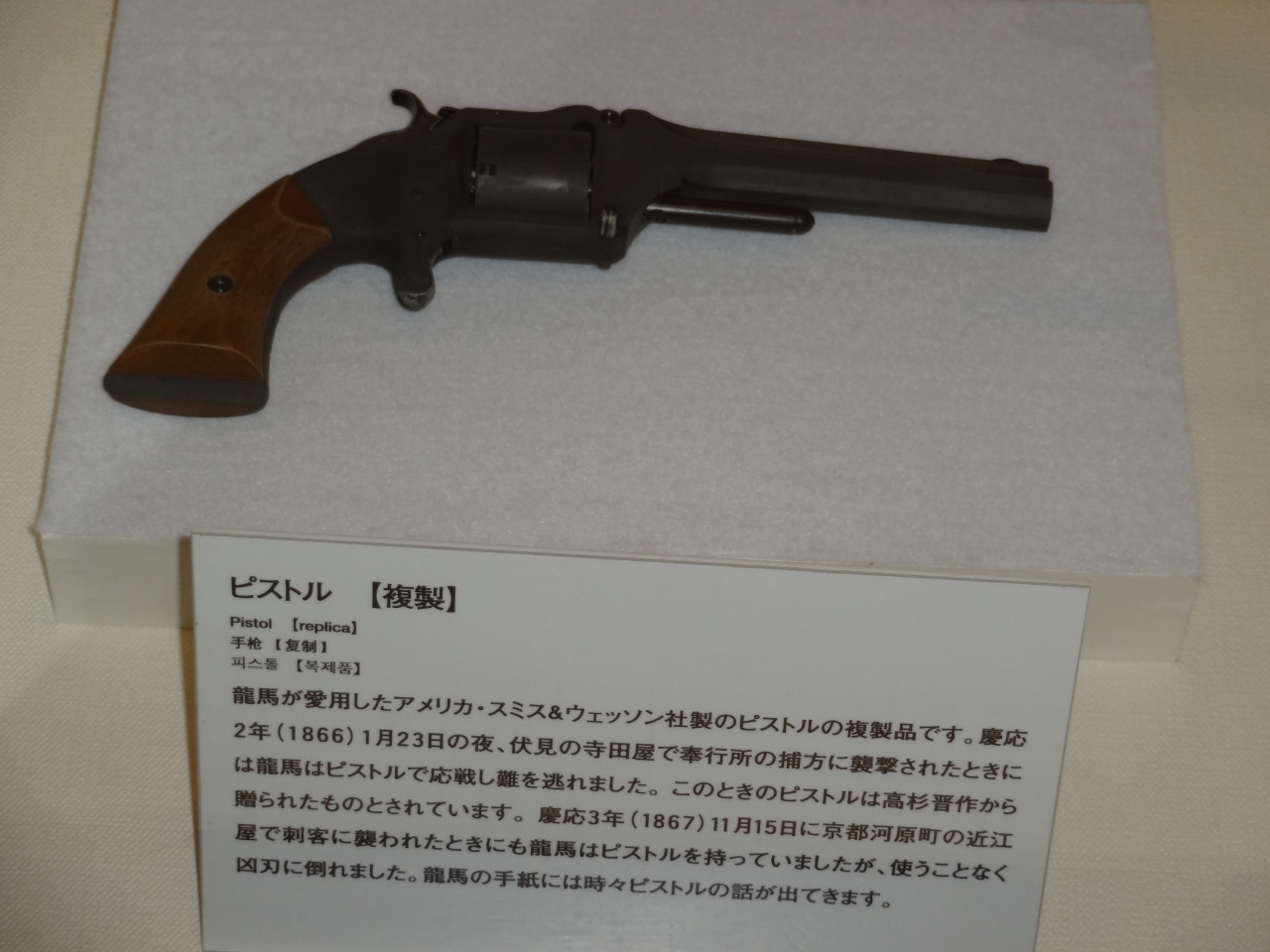 展示物は龍馬愛用の武器、着衣、同志の名札、等々武田鉄矢さんが寄贈してくれた龍馬像掛け軸等興味ぶかい。