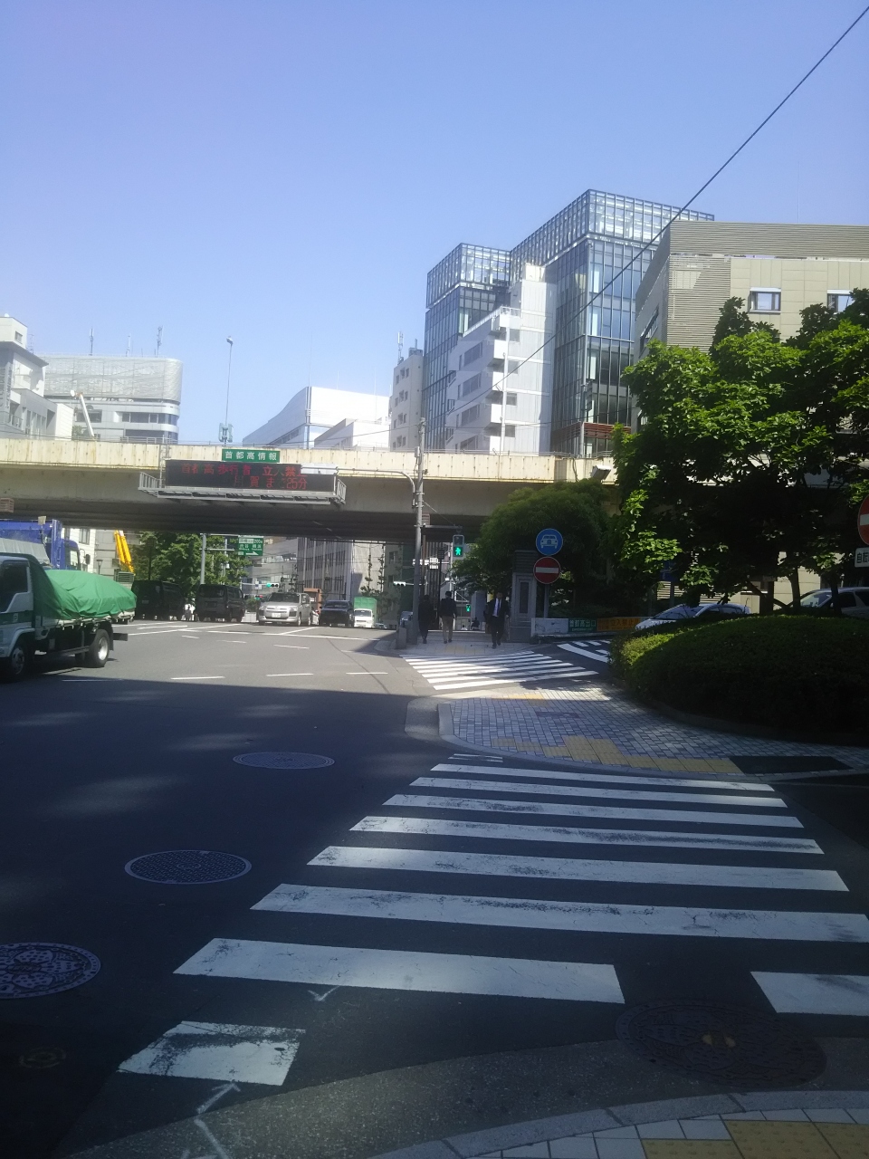 京橋駅から鍛冶橋通りを新川方面にむかうとある橋です。車で走っている分には橋をわたっていることには気づかないと思います。橋を斜めにクロスするように高速道路が走っており、五差路のような形になっていてよく車が渋滞する場所で、横断歩道に待ち時間も長いです。もともとこの橋は今は高速道路になっているとところに築地川が流れていたので、その名残の橋です。