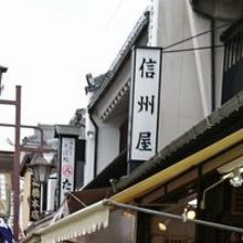 善光寺仲見世通りの山門手前にある昔ながらの土産物店です。お蕎麦やおまんじゅうなどのお菓子類、キーホルダーや置物など信州のお土産類が揃っていました。