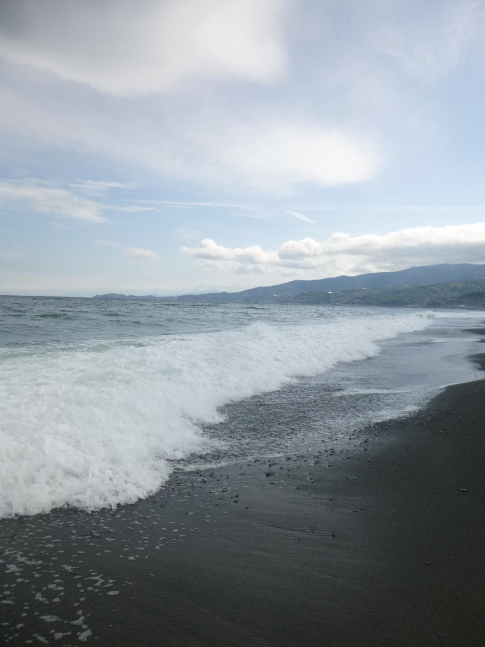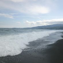 うれしくて裸足になって足だけ海水浴をしてきました。浜辺は丸石で裸足でも痛くありません。大小さまざまな真ん丸の石を探すのも楽しかったです。