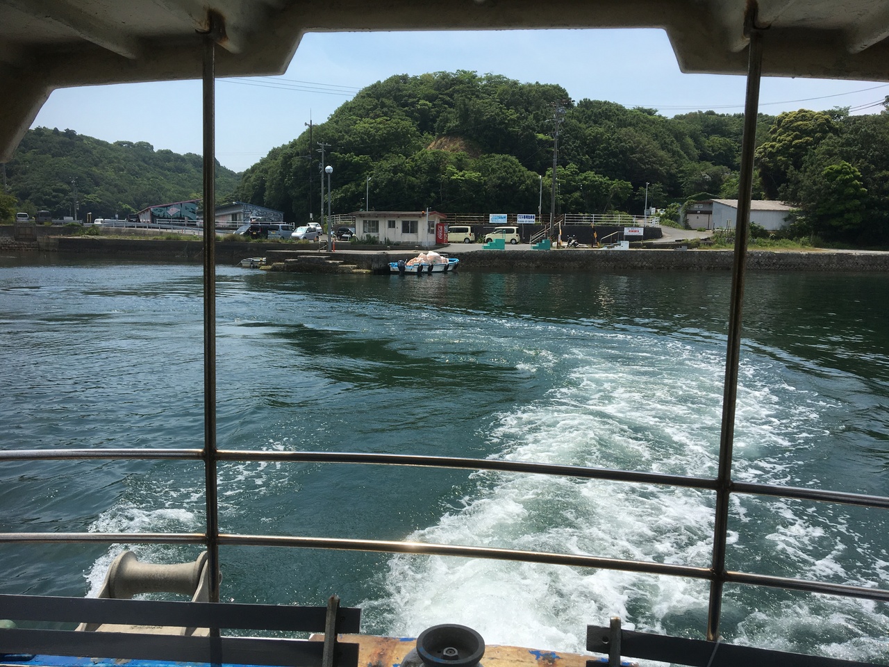 渡鹿野島に渡る渡船乗り場は、安乗岬に行く途中にあり、伊勢、鳥羽方面からは、ぐるっと島の南側からのアクセスとなり、意外に時間がかかりました。乗り場近くには、ホテル共用の駐車場があり、電話をすると渡船が迎えに来てくれます。港からすぐ先にホテルが見えます。