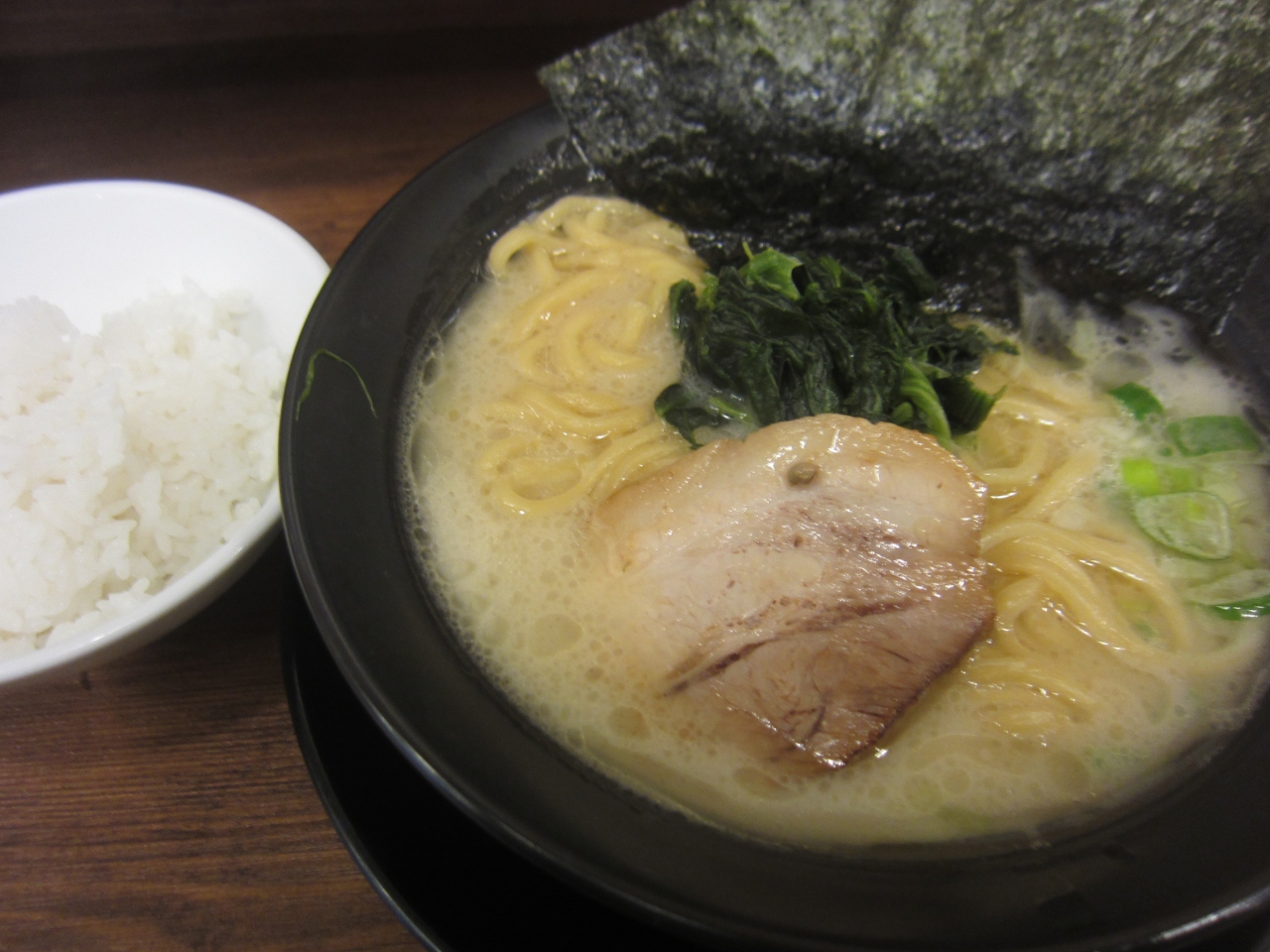恵比寿駅前のロータリーを渡り、駒沢通りを進んで行くとすぐの場所にある横浜家系ラーメンのお店です。豚骨ラーメンを中心に、つけ麺等もありました。麺の硬さなどが選べます。店内にはライスバーがあり、開店から17時まではライスを無料でいただけます。ラーメンの海苔でご飯を巻いて食べると良いそうです。