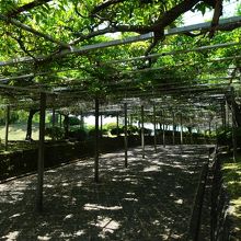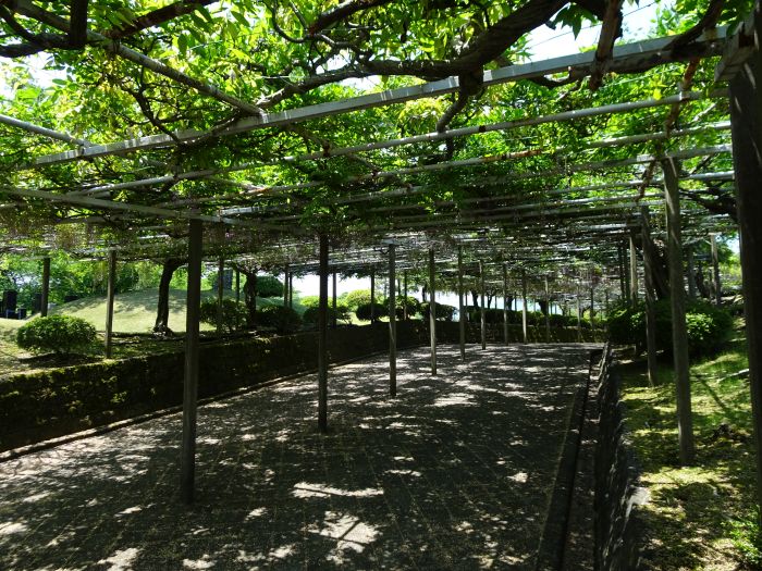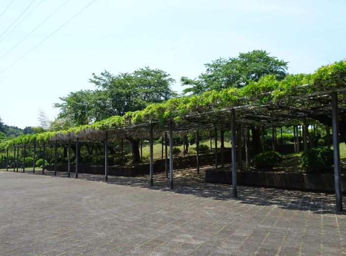 藤の見どころは4月~5月なので、訪れた時期は既に花が半分以上落ちた状態でした。それでも、紫色の藤がずっと向こうまで続いており見事でした。