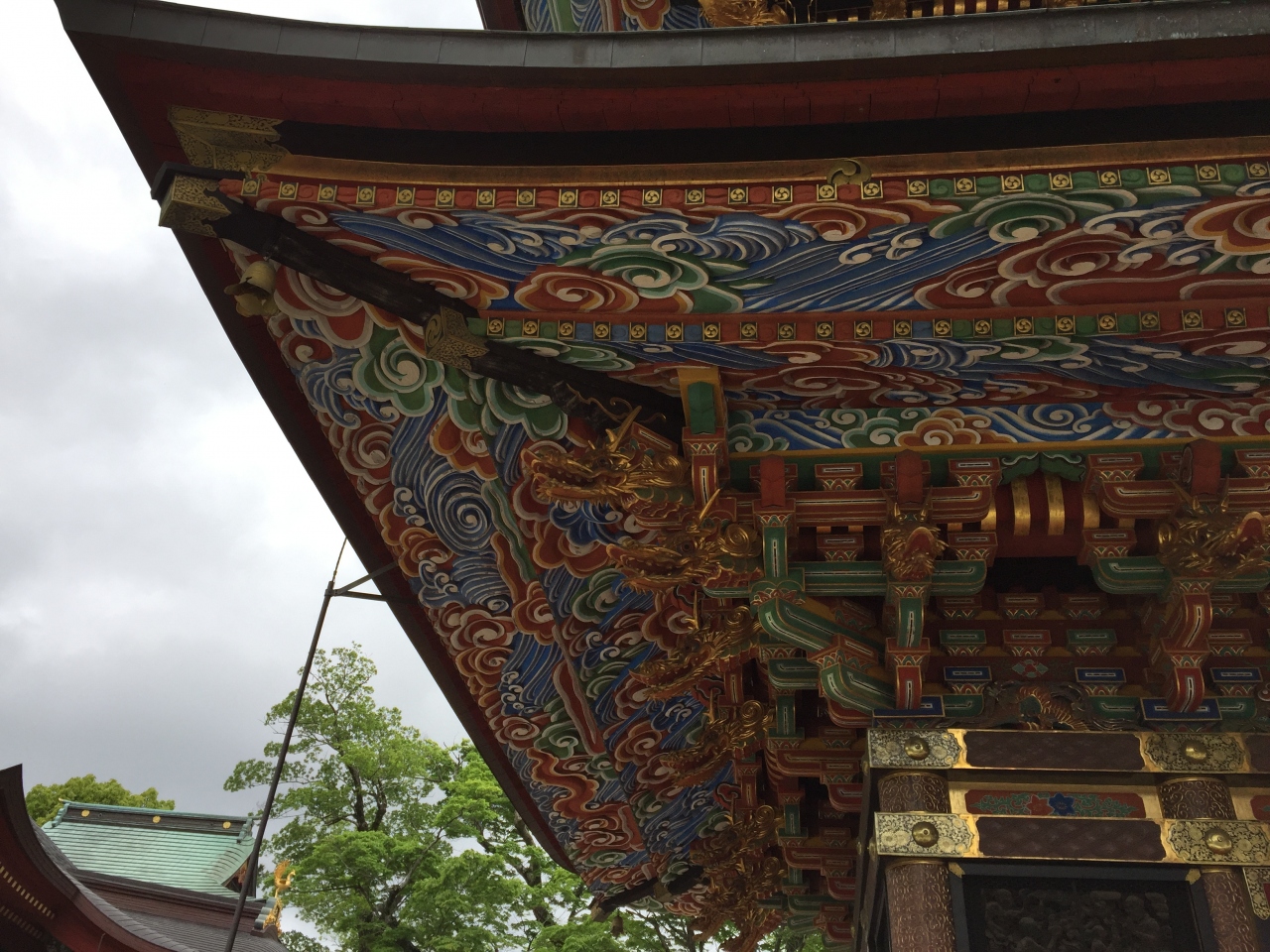 成田山新勝寺の大本堂の横に建っています。国の重要文化財に指定されており、1712年建立とのことです。300年前に建てられた塔と考えると歴史を感じさせてくれます。美しい三重塔ですが、特に、各層の下の装飾が見事で、色も鮮やかでした。