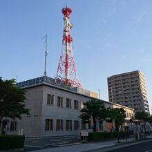 山形市桜町にあるNHKの山形放送局。2階建ての小さな放送局です。