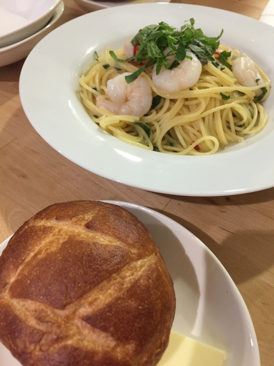 平日の13時頃に行くと、かなり空いていました。ランチはパスタランチとメインランチの二種類です。味はカフェランチのような感じで、普通でしたが、店内は木目調で明るくて綺麗で、ゆっくり過ごすことができます。パンが美味しかったのですが、お代わり有料とのことでした。