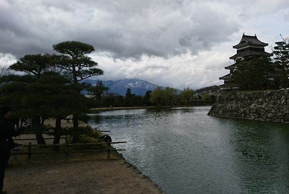 国宝松本城を取り巻く公園です。ソメイヨシノやシダレザクラなど桜の木がたくさん植えられていました。お花見の時期には、残雪が残る北アルプスを背景に見事なさくらが咲き、松本ならではのお花見が楽しめるそうです。公園内を散策し様々な角度からの松本城を楽しみました。