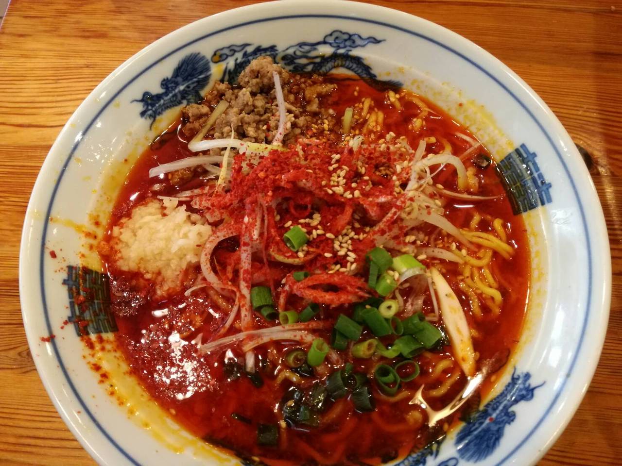 八千代警察署のすぐ脇にあるラーメン屋店です。この辺りでは、人気のラーメン店のようで店内は混雑していました。醤油、味噌、とんこつラーメンのほか、勝浦タンタン麺があったのでこれを食べましたが、見た目が真っ赤な割には思ったほど辛くなく美味しかったです。