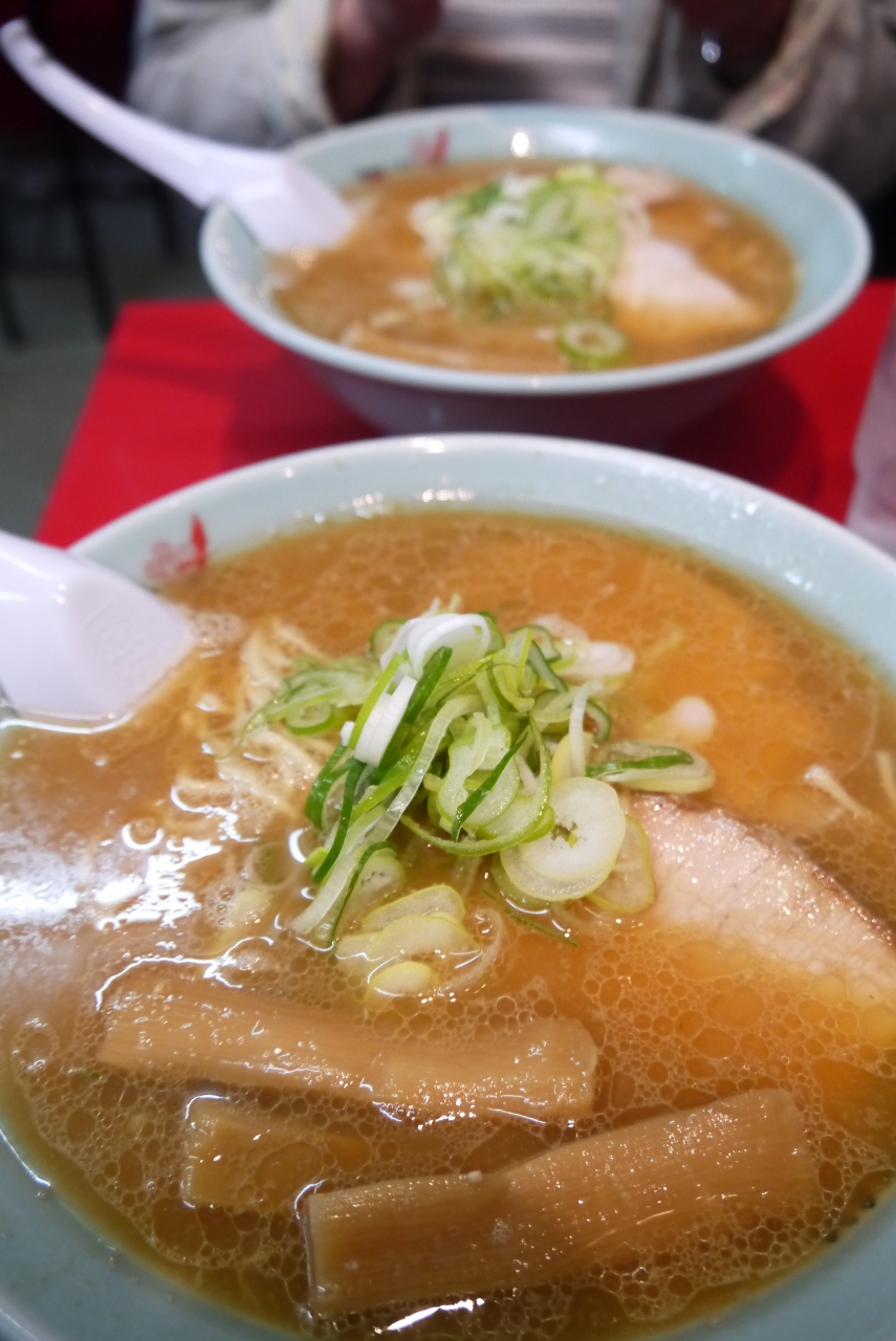 旭川といえば「醤油」ということで醤油ラーメンにしましたが、出てきたラーメンを見ると、「味噌?」かと思うような色合い。