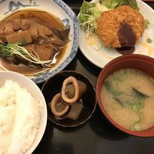店前のメニューを見て気になっていたこちら。お昼のお魚定食が食べたくて行ってきました。魚は煮魚か焼き魚をチョイス可能。ごはんに先付におだしの効いたお味噌汁にとほっこりする内容で満足度が高くてお気に入り。