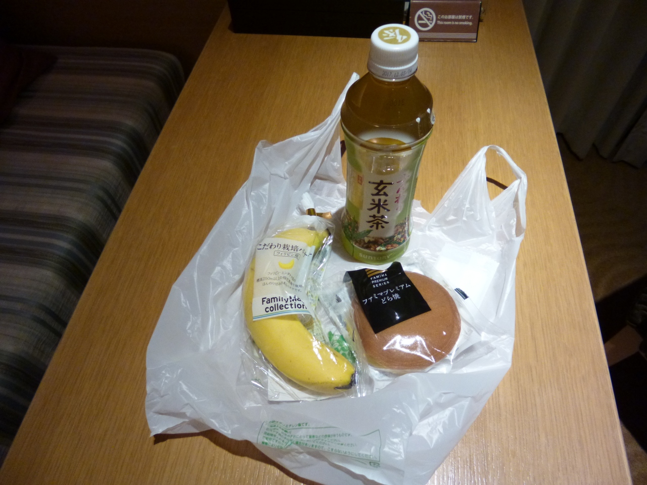 今回は遅い到着で、軽く食事は済ませていたので、軽食と飲みものを調達しました。