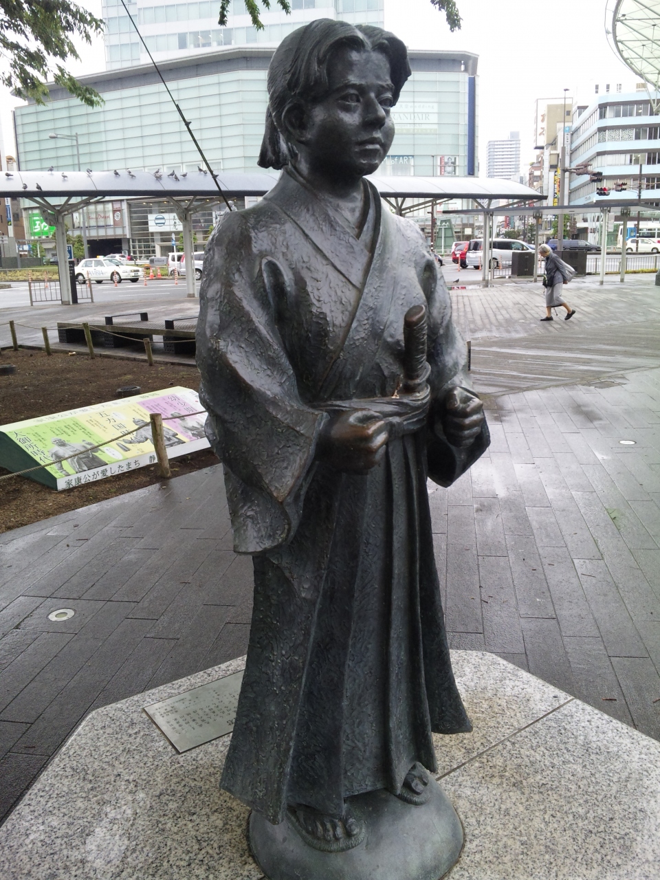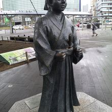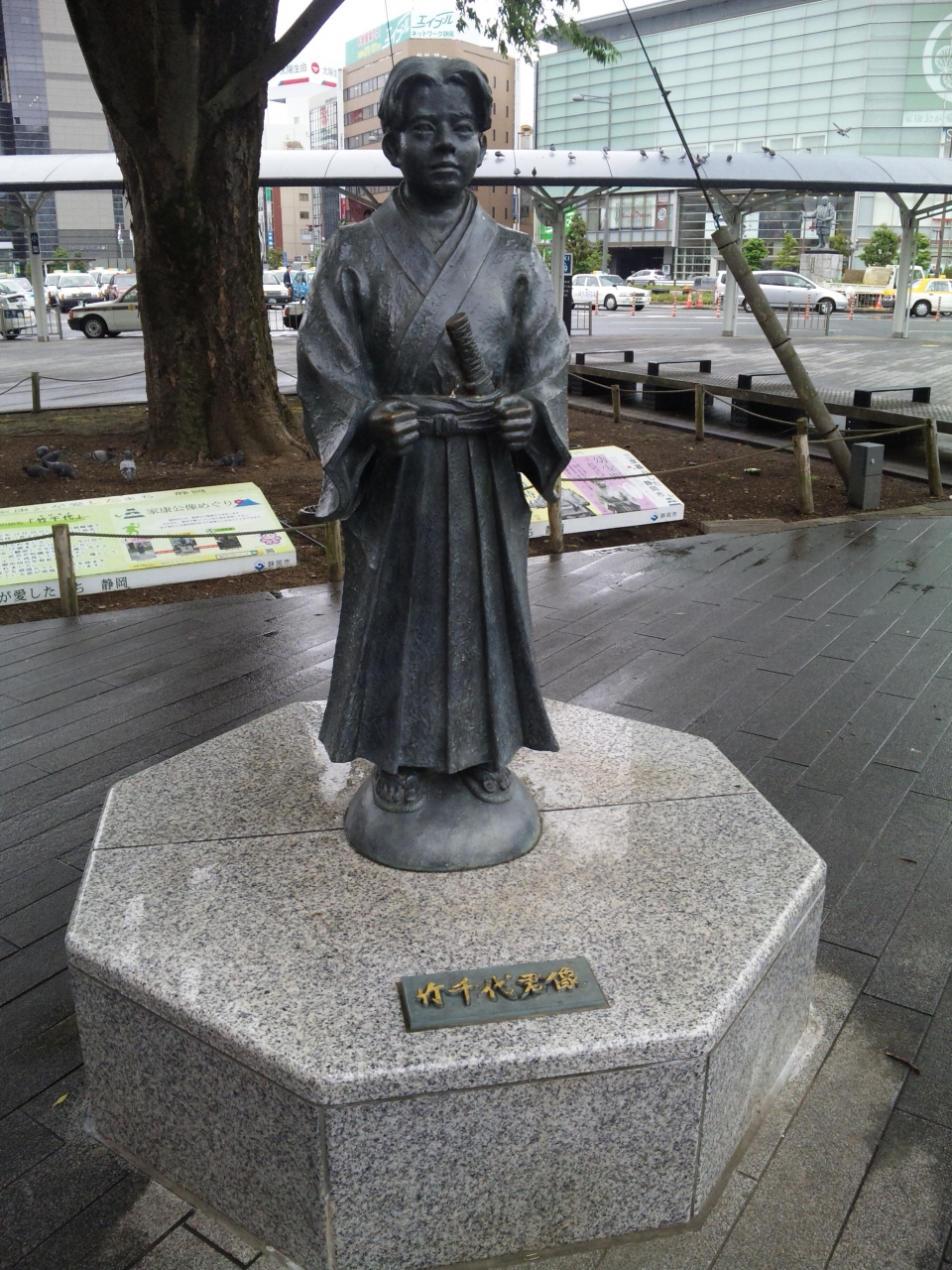 バスロータリーとタクシー乗り場の間に立ってます。8~9歳頃の今川家人質時代の家康公(竹千代君たけちよぎみ)ですよ。握りしめた両手で忍耐と決意を表している様です。北西には壮年期の像も立ってますので合わせて見ると良いでしょう。