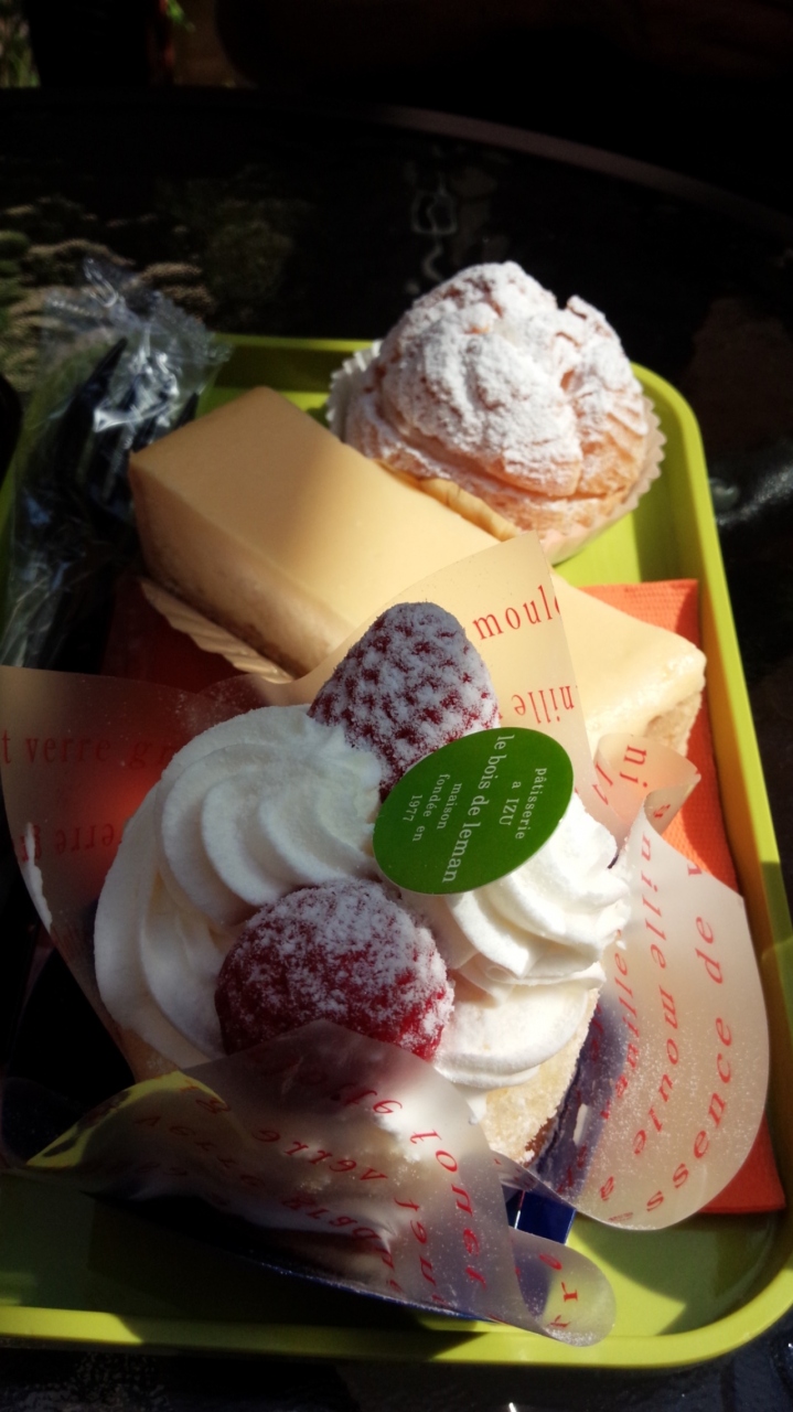 当初はケーキをテイクアウトの予定でしたが急遽飲み物を追加し陽光を浴びながらティータイムを満喫しました