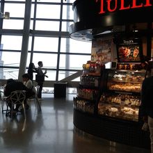 セキュリティーや出国手続きを済ませて、それから更に、ウィングシャトルで搭乗ゲートまで移動した所にあります。ここまで来ると飲食店も少なくなってきて選択肢も限られてくるので、こちらのお店も少し並んでいました。店の隣に座席もありましたが登場ゲート前の待合席でゆっくり頂きました。