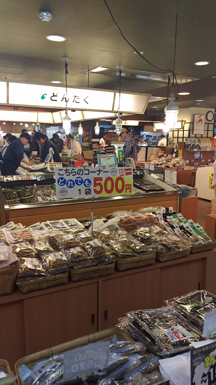 車でも行けますが、七尾駅からも徒歩10分ほどとアクセスが比較的よい場所にあります。七尾でお土産を買うならここが間違いないでしょう。地物の魚などところ狭しといろいろなお店があります。スギヨの直営店までも。2階は食事もでき、七尾湾が一望できる広場が併設されています。