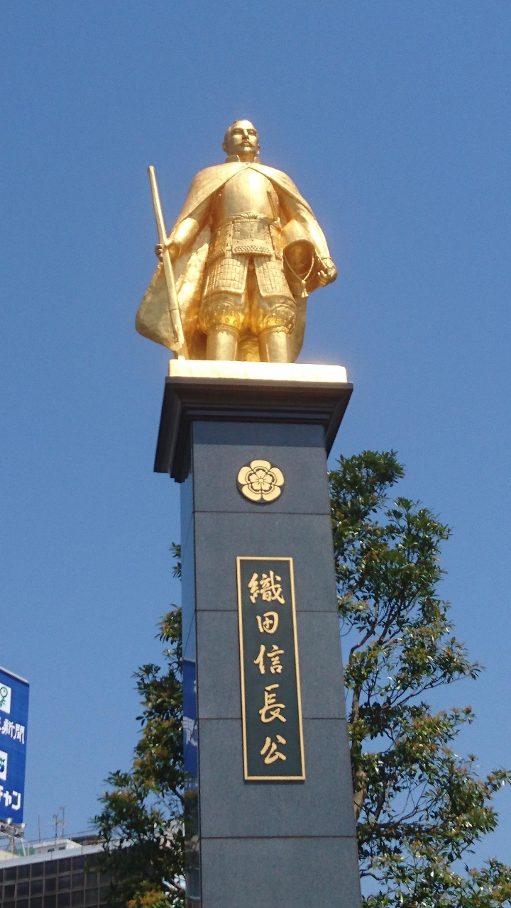 信長ゆめ広場に黄金色の織田信長像があります。この像は岐阜市制120年を記念してJR岐阜駅前に建てられた織田信長公の黄金像です。遠くから見てもその派手さがわかります。また、近くから見てもその大きさと存在感に圧倒されました。