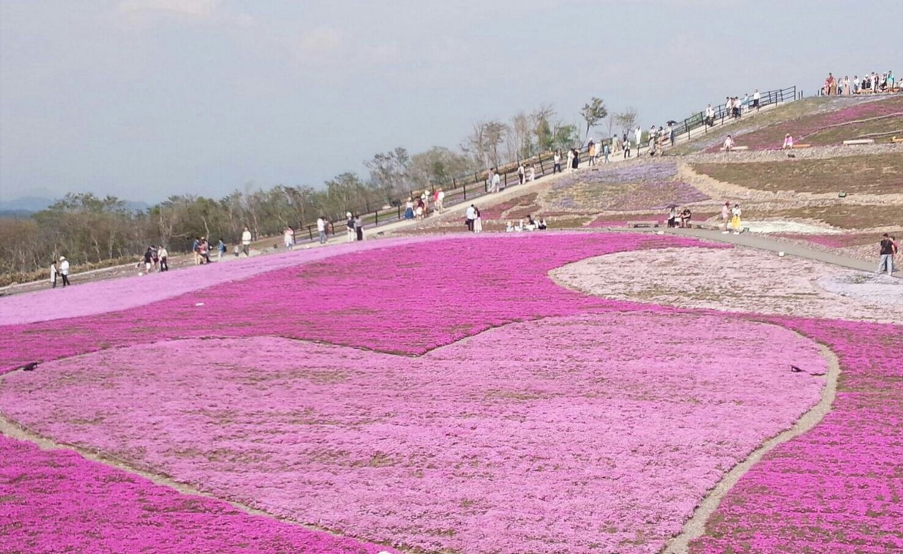 昔より少し芝桜のゾーンは広くなりました。これから年々増えてさらに広くなるのでしょう。テレビで広大な映像を見てくると、意外と小さいかなと思うかもしれませんが、芝桜の美しさはすごいです。