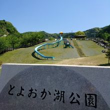 湖となってますが、貯水池のようなところです。公園には遊具は少ないですが長い滑り台は人気です。