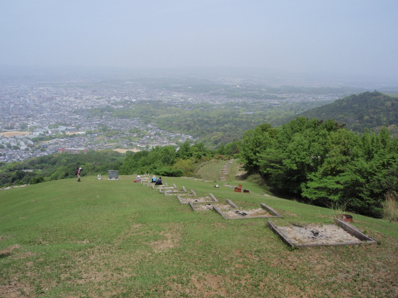 若草山登山途中、高円山に寄りました。近鉄奈良駅春日大社、氷室神社、新薬師寺を経て、急登りを登った先、突然視界が開け、高円山の大文字火床に出ました。京都五山の送り火は有名ですが、私は奈良にも大文字送り火があるのは知りませんでした。火床の配置を見ると、京都大文字のそれと大きさは変わらないように見えるので、見事な送り火であろうと想像されます。展望所からは奈良市内が見下ろせます。この後高円山山頂に向かいました。展望はありませんでした