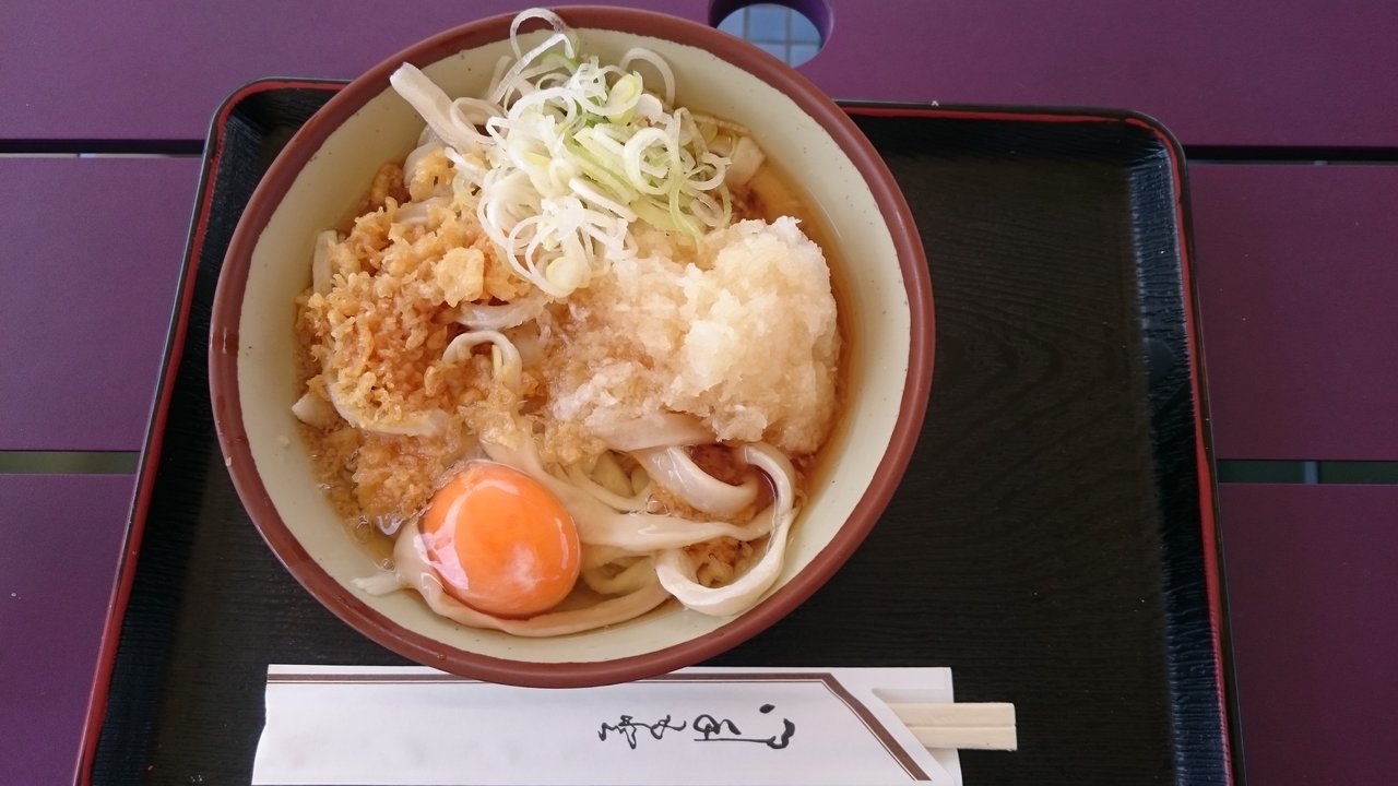 屋外で食べるうどんは新鮮で思った以上に美味しくて一気に食べてしまいました。