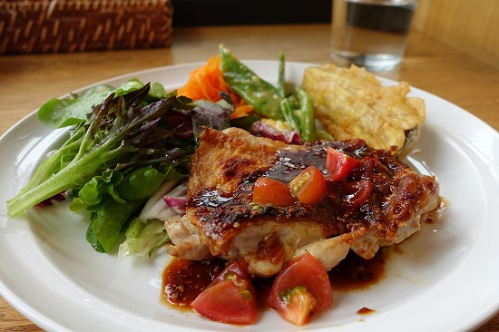 天王寺公園におしゃれな飲食店がいろいろ集合したてんしば。こちらにあるお店で、お店の名前からもイタリアンなんだなーってわかります。ピザが評判のようなんですが、ランチのメイン付のものをいただきました。1枚のプレートにお野菜とチキン。これにスープとご飯。イタリアンらしいソースのかかったチキンはジューシーで美味しかったです!
