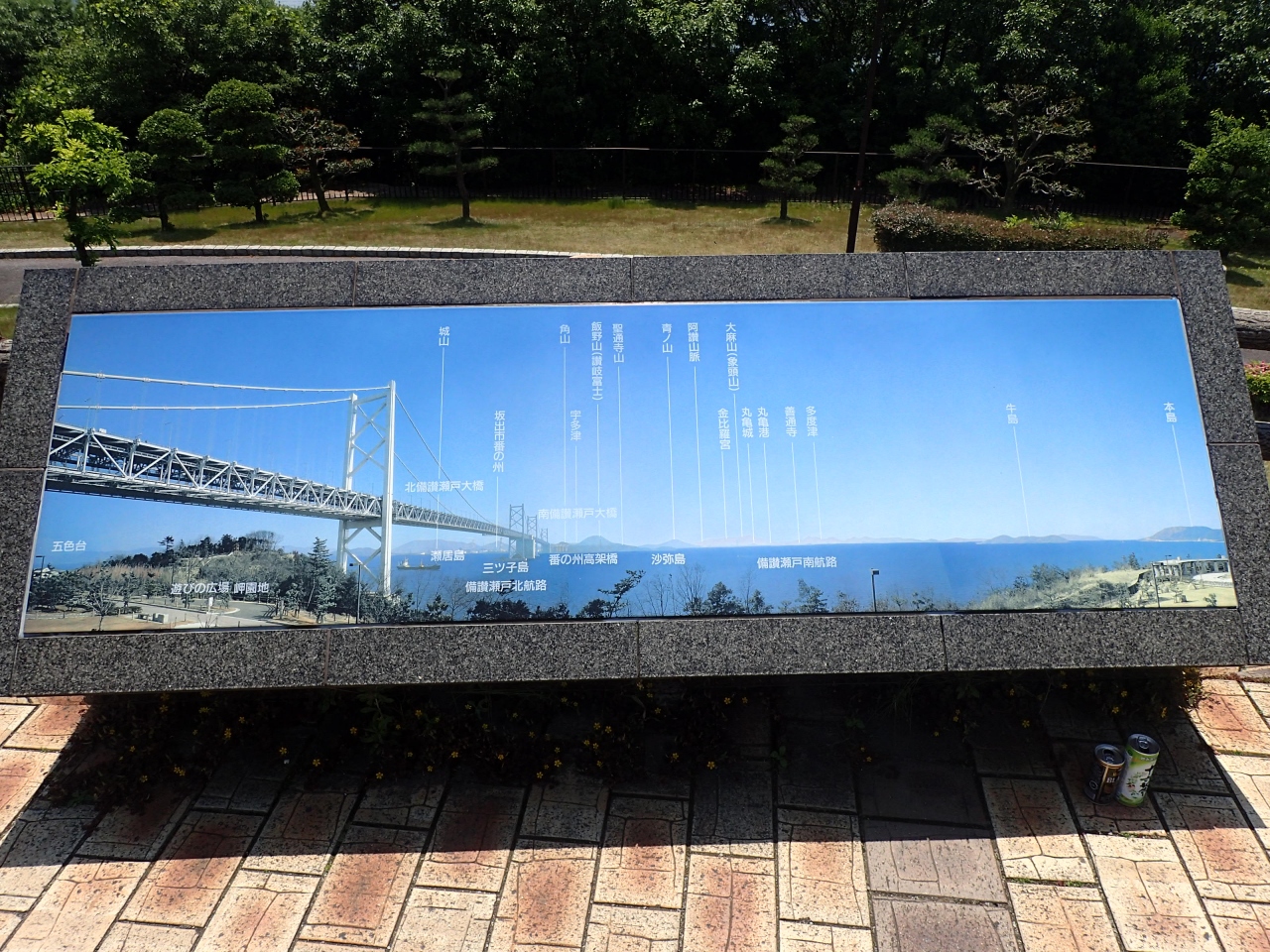 ちょっとした高台に上れるようになっていて、橋や瀬戸内海を眺めることができる。