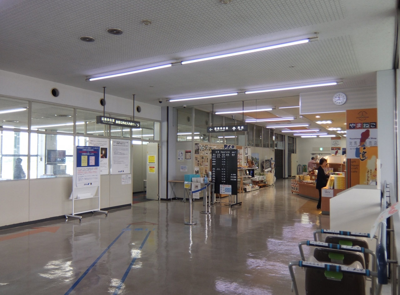 長崎空港と福岡空港とのフライトがあるローカルな離島空港。使用便はQ200とQ400だったので、飛行機とターミナルの間は徒歩で。荷物受取場を通りボーディングするのは新鮮。737も就航しており、ボーディングブリッジも整備されていた。