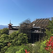 祇園で昼食を食べ歩いて清水寺に向かいました。この日は京都市内の観光地を幾つか訪れましたが、こちらが一番混み合っていました。境内の建物の一部は修復作業を行なっており、テレビや写真で見る、清水の舞台の姿は今ひとつでしたが中々のものでした。音羽の滝は、かなり長い行列が出来ていたので諦めました。また、訪れたいと思います。