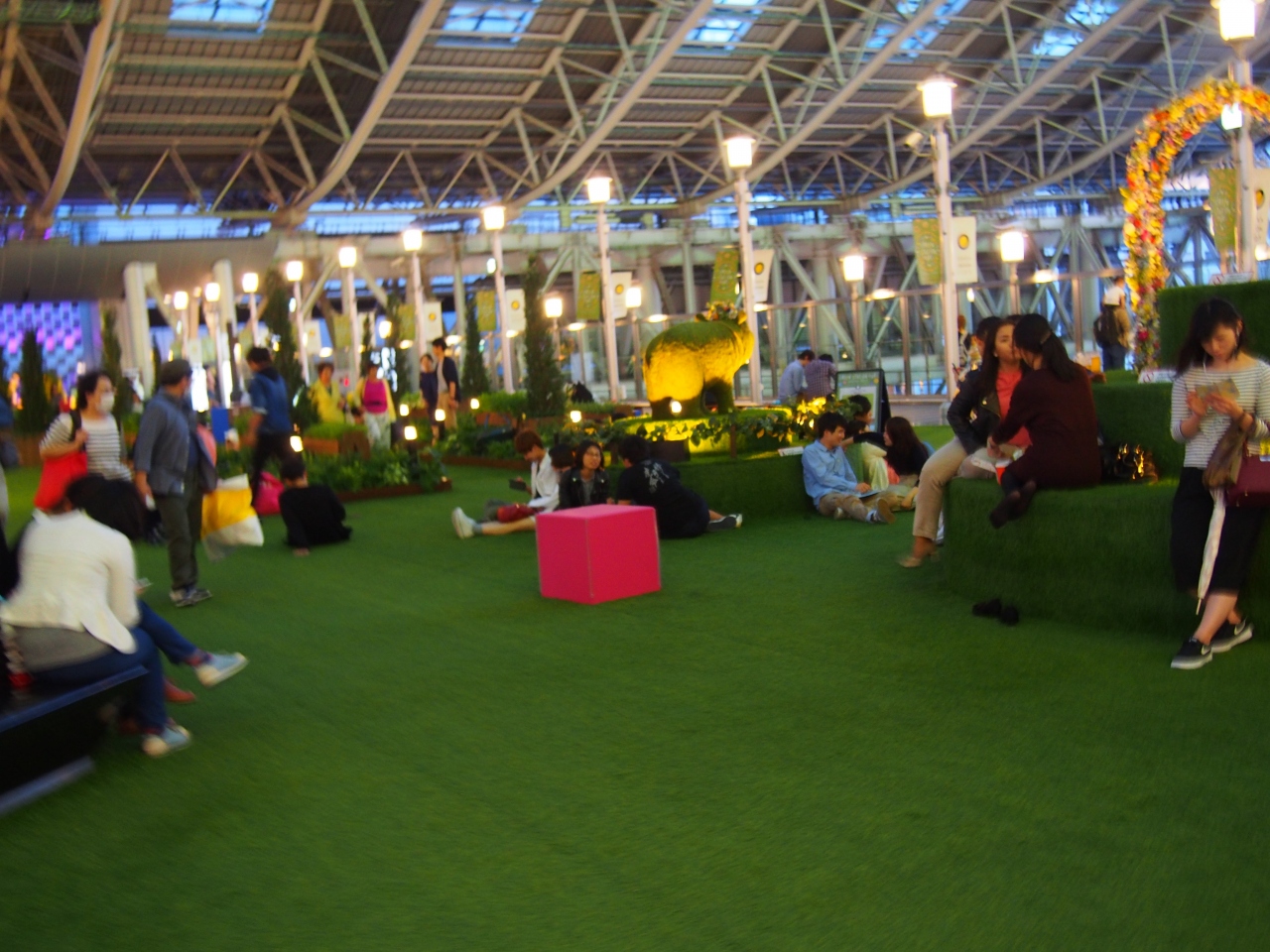 時空の広場と書いてトキノヒロバと読ませる。良いネーミングです。前回訪れた時はベンチがあるのみだったのですが、今回訪れてみると人工芝が敷き詰められがらりと雰囲気が変わっていました。カップルの憩いの場になっているようです。