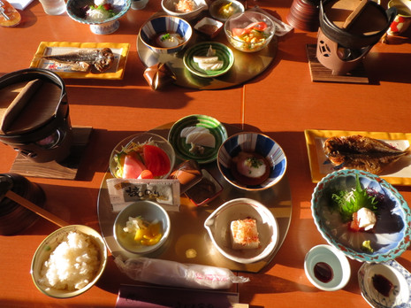 夕食膳に負けず劣らず品数豊富です。伊豆と言ったらアジの干物が欠かせません(^^♪