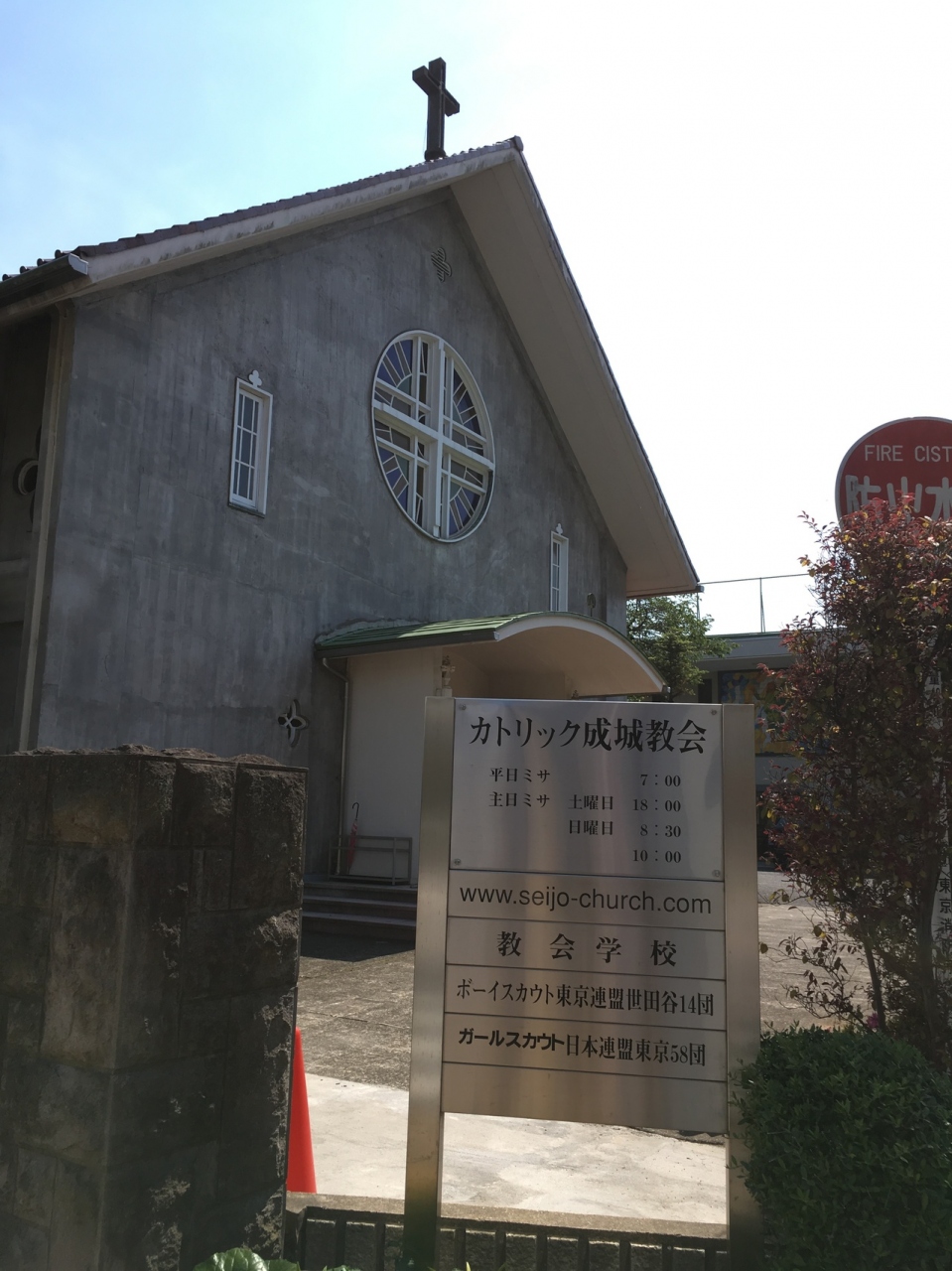 小田急成城学園前駅から少し歩いた二子玉川駅行きのバス停の前にあります。あたりは純然たる住宅街ですが、住宅街の中に忽然と現れる教会です。住宅街にもよく馴染む建物の作りで、やや近代建築風で面白いなと思いました。ミサの時間以外は内部見学も可能です。受付の方はとても親切でした。
