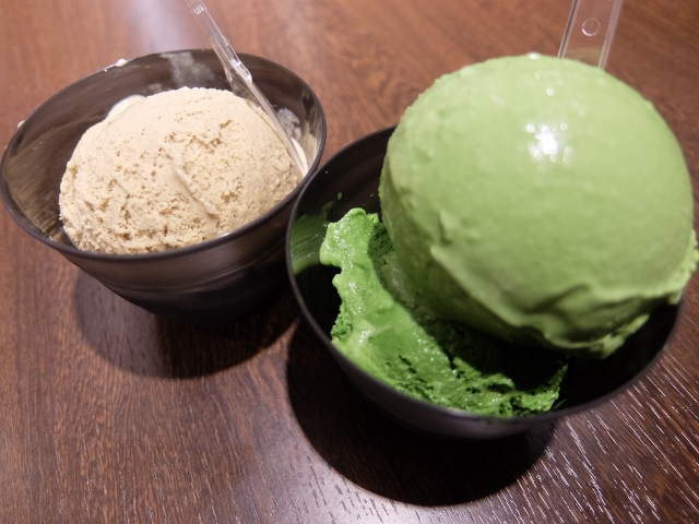 7段階の抹茶アイスが楽しめるお店です。抹茶の4と6、ほうじ茶アイスを食べました。もっと苦い感じだと思っていた6はそれほどでもなく、今度来たら7を食べてみようと思いました。ほうじ茶アイスも香り良く美味しかったです。アイスを食べ終わる頃、「お口直しにどうぞ」と小さいカップに入った水出し煎茶がサービスされました。これまた香り高く濃いめのしっかりした味で、とても美味しかったです。
