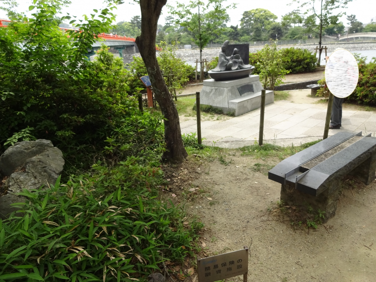 パークと言うより川縁の遊歩道の一部のようなちょっとした場所だが、ベンチも置かれていて座れば朱色の朝霧橋も見え、一休みにも良い場所だ。