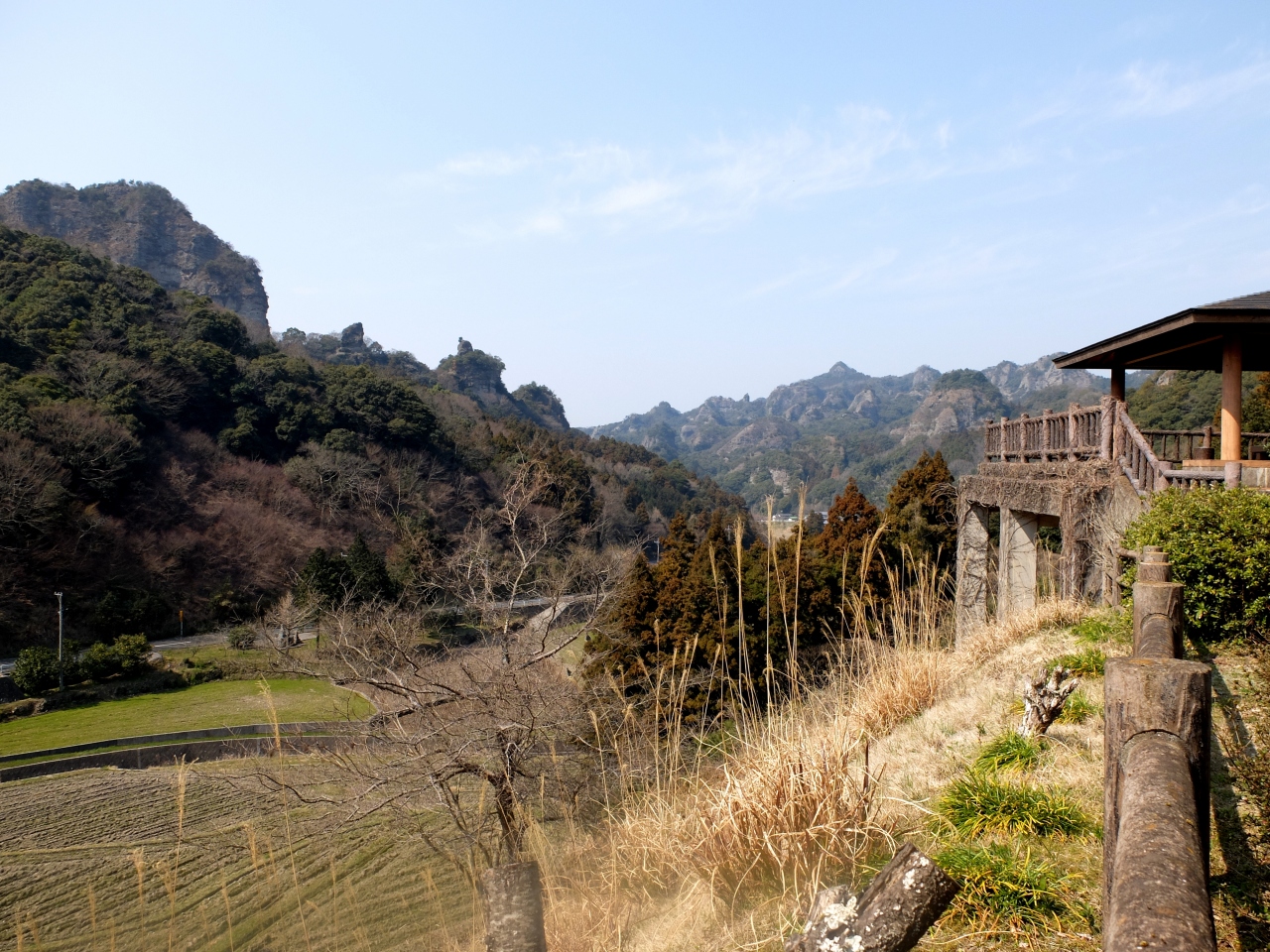 展望所から「一路一景」と称される絶景の夷耶馬へ.小さな公園に展望台がある.ここもすごい耶馬だ.特に窓岩付近は修行の場となったろうなあ.窓岩から大仏岩,エボシ岩と続き,中山仙境となる.