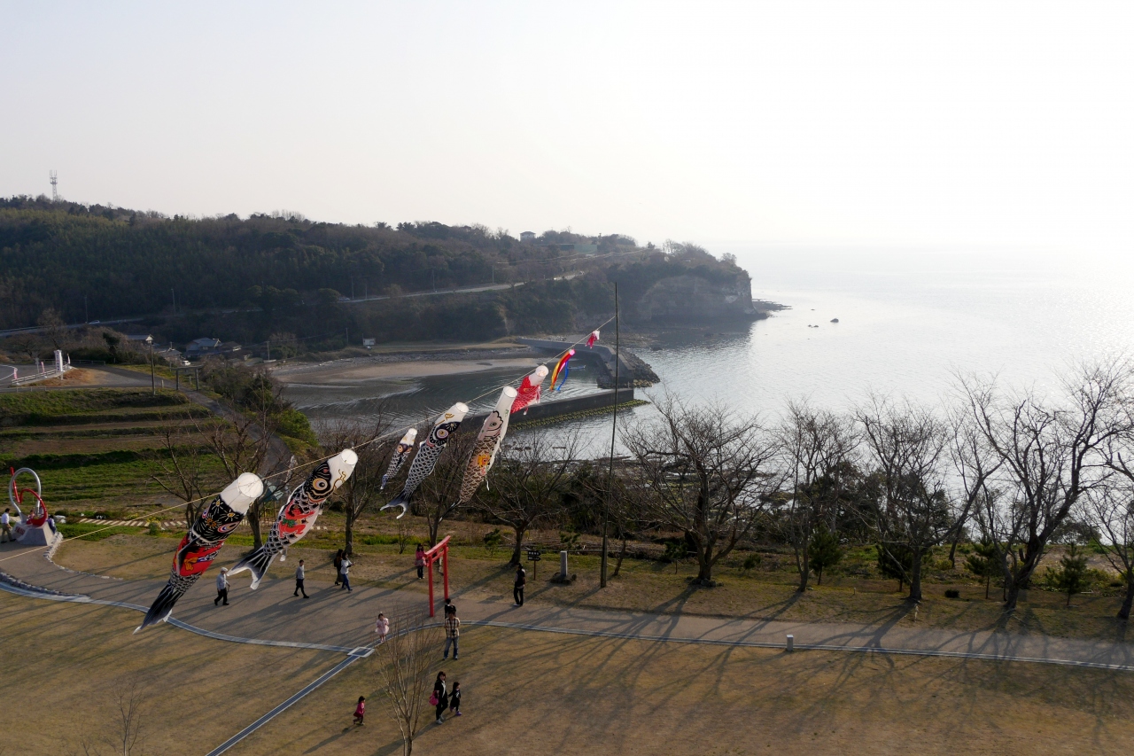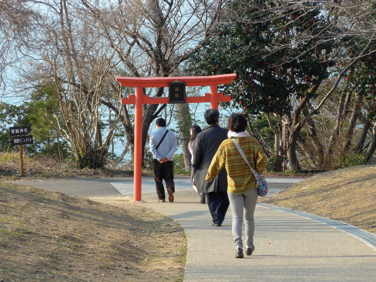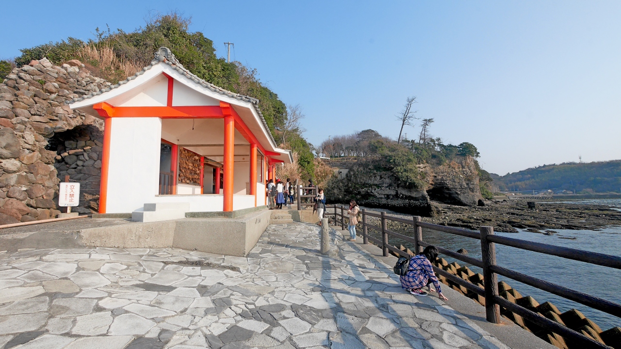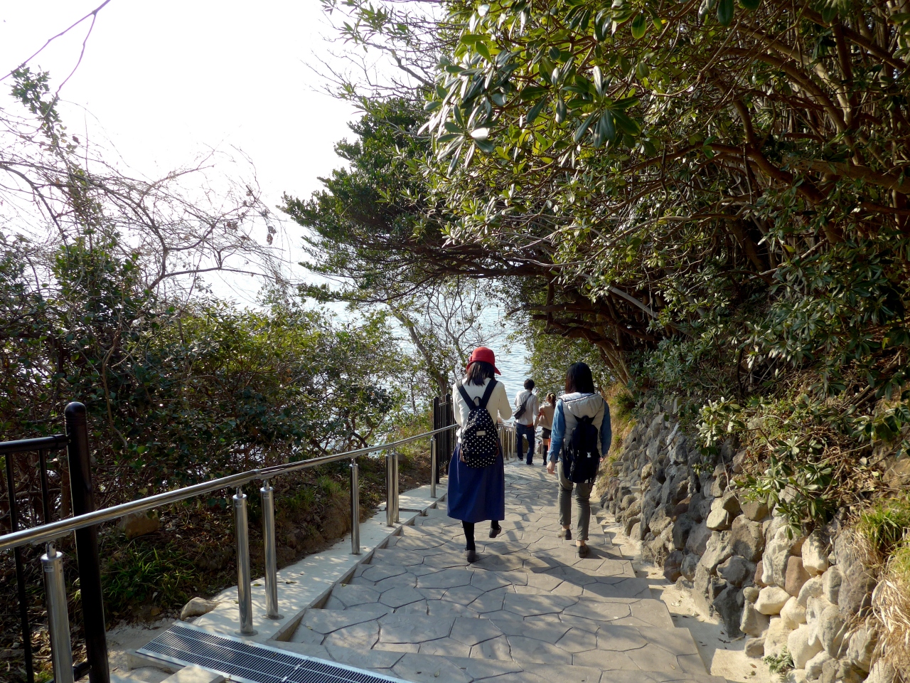 海の先に粟嶋社があり,そこから見る海の景色が最高.海に輝く夕日がきれい.