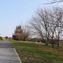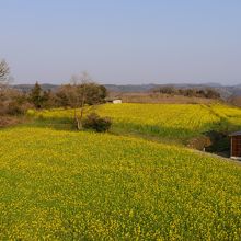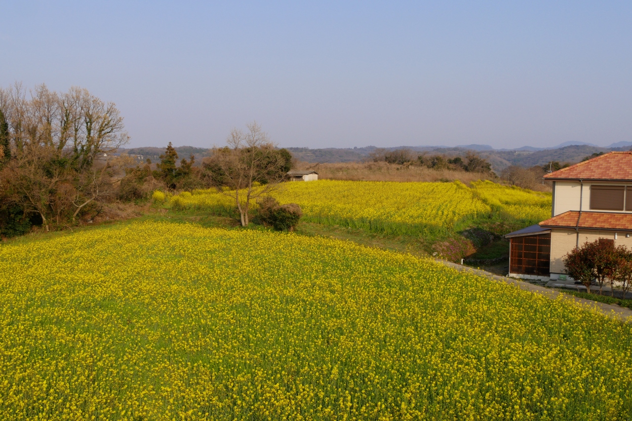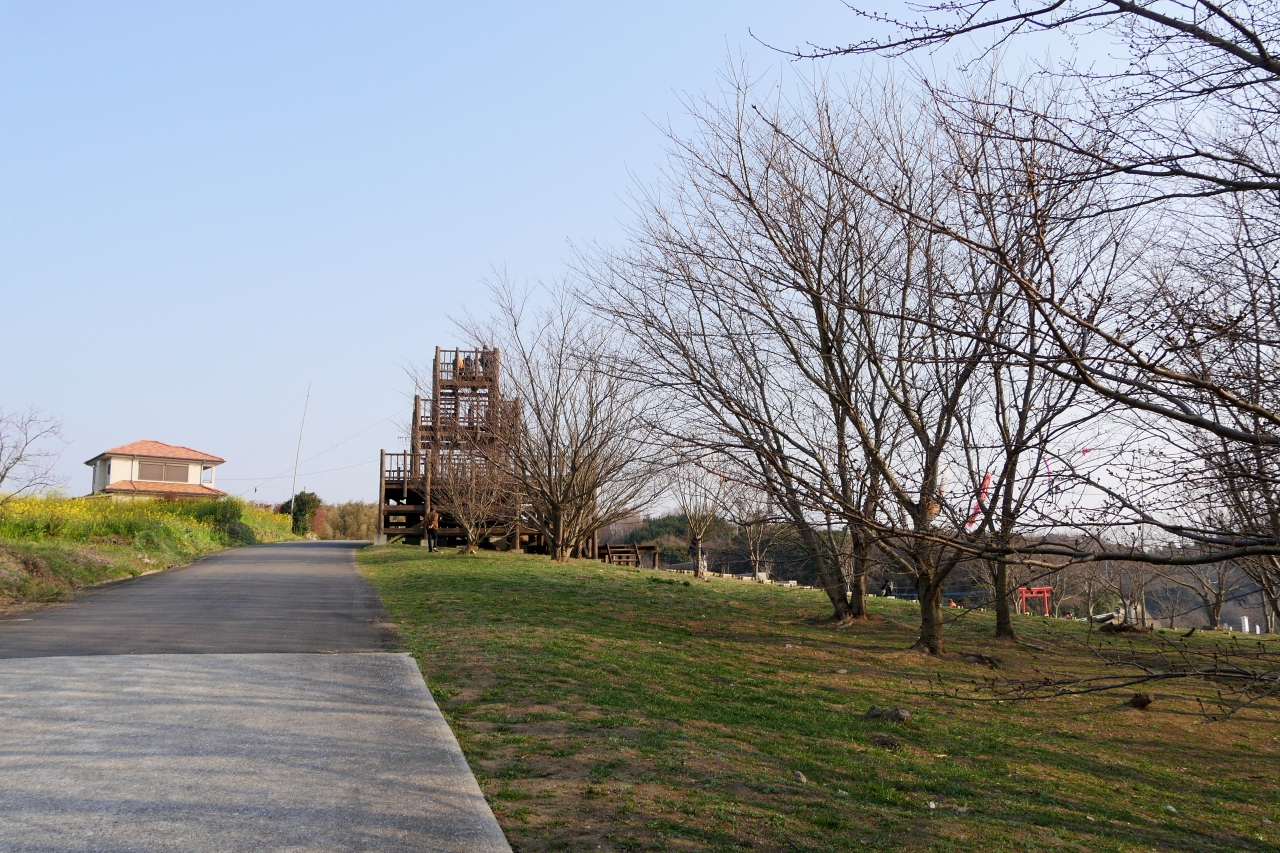 公園内のジャングルジムのような構造物の上から見た菜の花畑もきれいだった.3月の春を満喫する景色.デートスポットだろうねえ.家族連れにもよいと思う,