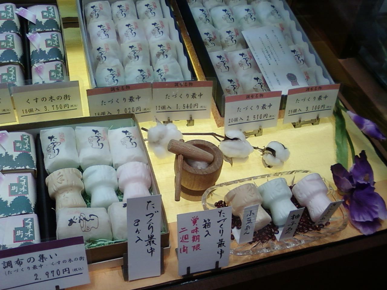 ここの松月堂さんは、京王線調布駅から二分くらいのところにある、パルコの地下一階。フードフロアにあります。調布限定のたづくり最中もありました。かつて布を朝廷に納めていた調布、調布は「てづくり」とも「たづくり」とも読むんですね、布づくりのさかんな、かつての調布をしのばせる最中です。