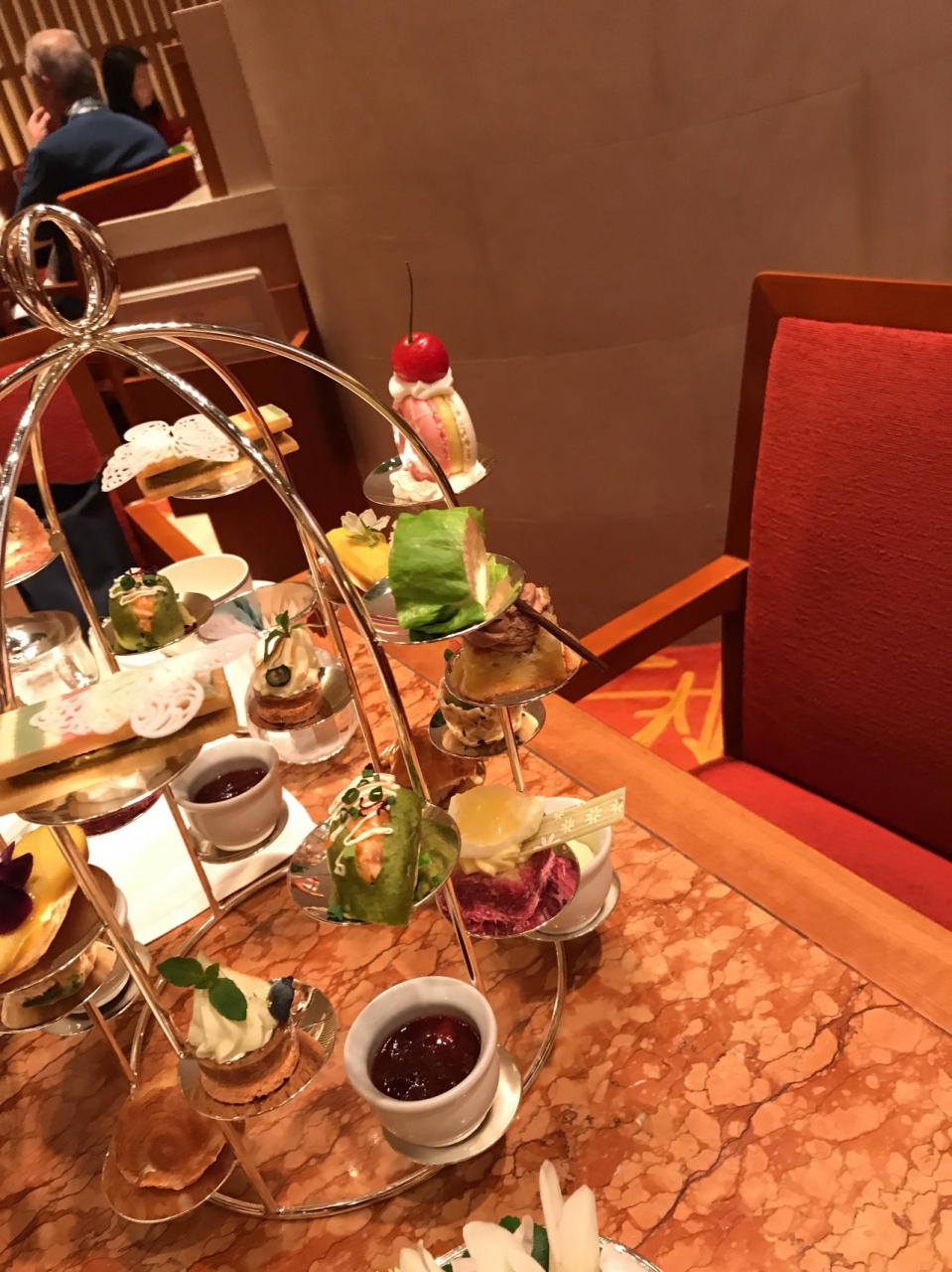 ペニンシュラホテルの一階にあるラウンジです。一階ということもあり人の出入りが頻繁にあるので賑やかな感じです。オールデイダイニングです。アフタヌーン・ティータイムに利用しました。生演奏を聴きながら優雅な時間が過ごせます。スイーツもとても可愛かったです。