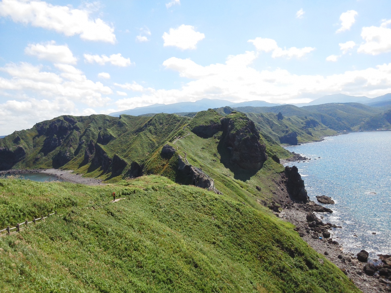 神威岬の駐車場から先端へは起伏のある長い道が連なっています。