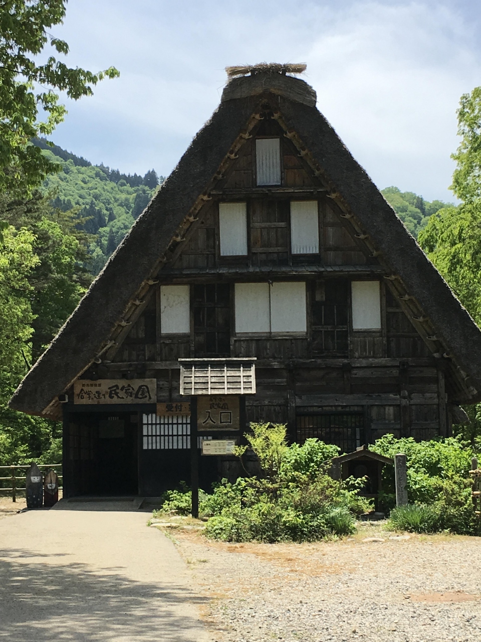 世界遺産白川郷に行ってきました。冬も素敵だと思いますが、雪国に住んでいる私には、雪のない白川郷も茅葺き屋根のすごさを間近で見ることができ、中を見学し、素敵な町並みでした。遠い山にはまだ、雪がのっていて、とてもすてきな景色でした。