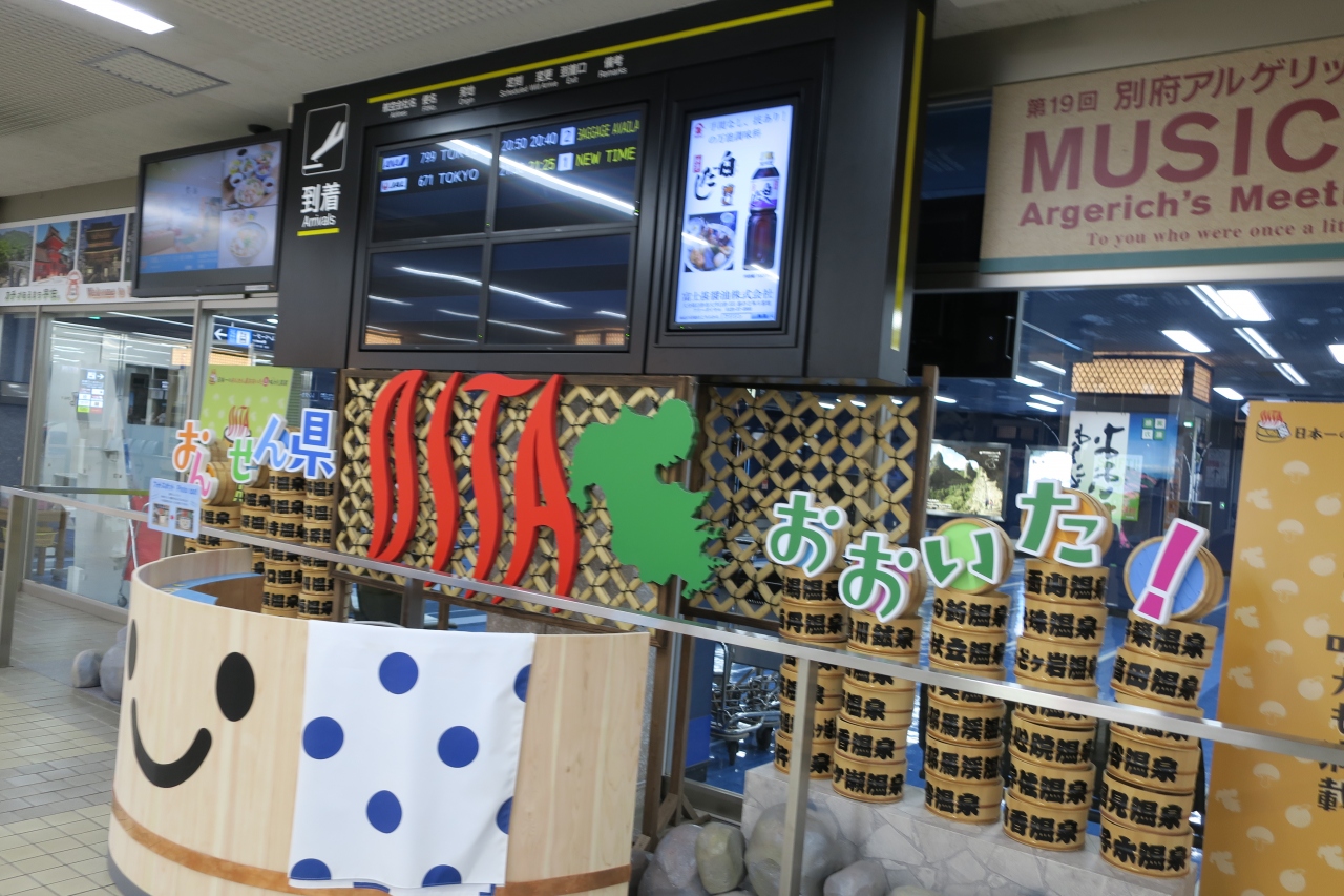 到着口を出るとすぐ、「足湯」が目に入り、「さすが大分!」と思いましたが、残念ながら営業時間終了後でした。残念。(営業時間は11時から18時30分です)